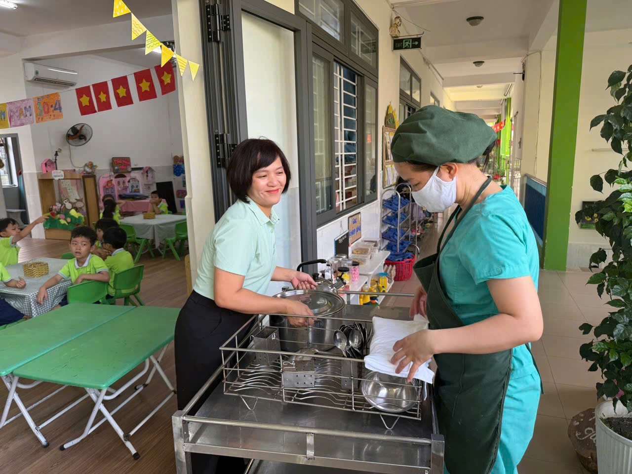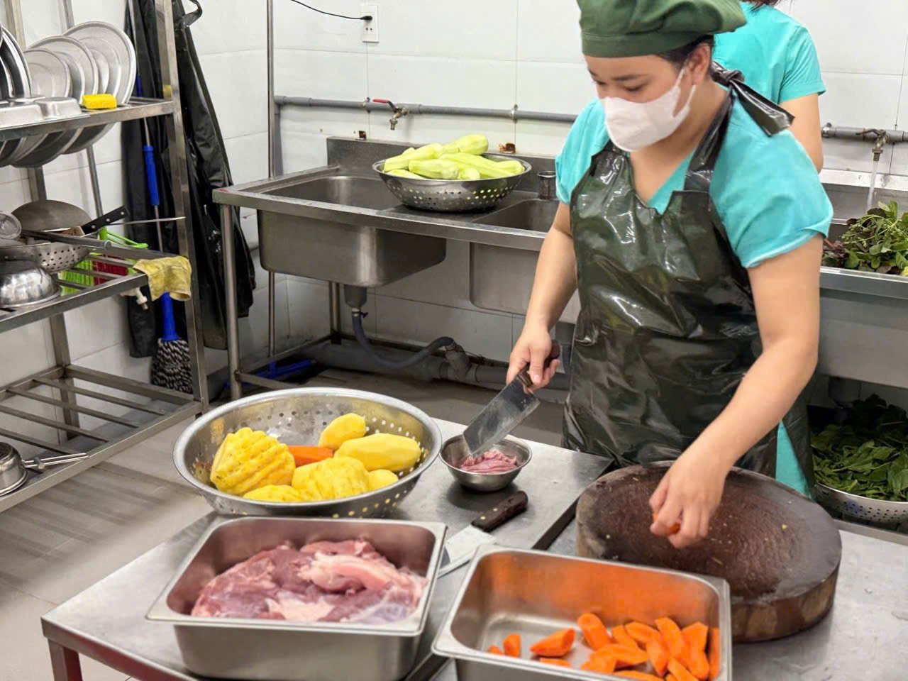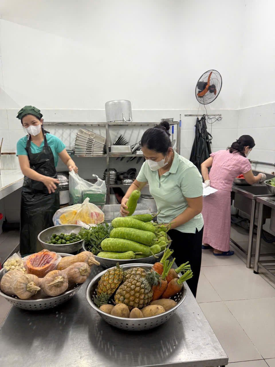 Quy trình nghiêm ngặt: Đại diện Ban giám hiệu, Y tế, đại diện thanh tra và bộ phận Bếp luôn kiểm tra kỹ lưỡng về định lượng và chất lượng, ký sổ giao nhận minh bạch mỗi sáng.