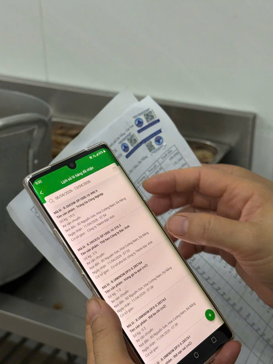 Quét mã QR truy xuất nguồn gốc rõ ràng: Thực phẩm được giao từ các đơn vị cung ứng uy tín, có đầy đủ giấy tờ chứng nhận ATTP.