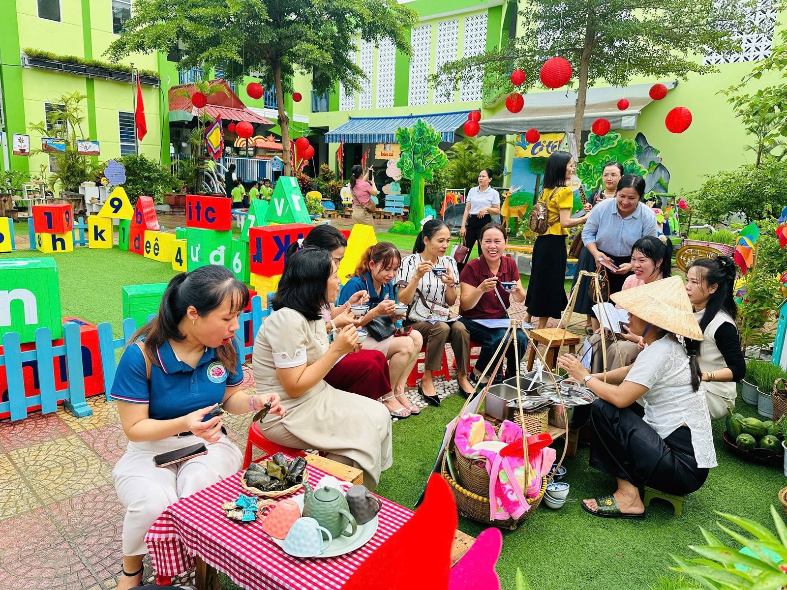 ☘️Trong buổi làm việc, đoàn đã tham quan môi trường trong và ngoài lớp học, tìm hiểu cách xây dựng môi trường giáo dục lấy trẻ làm trung tâm, đồng thời trao đổi, học tập về công tác quản lý, các loại hồ sơ – sổ sách và hoạt động chuyên môn của nhà trường.