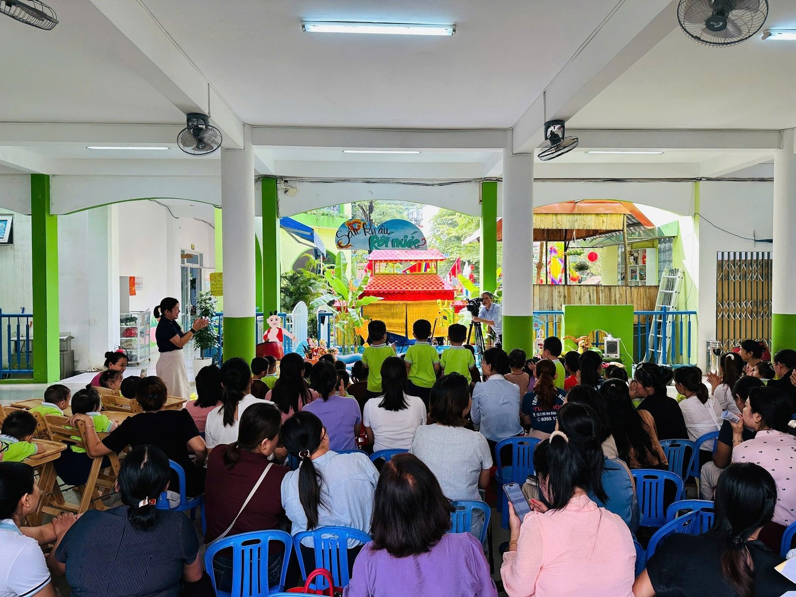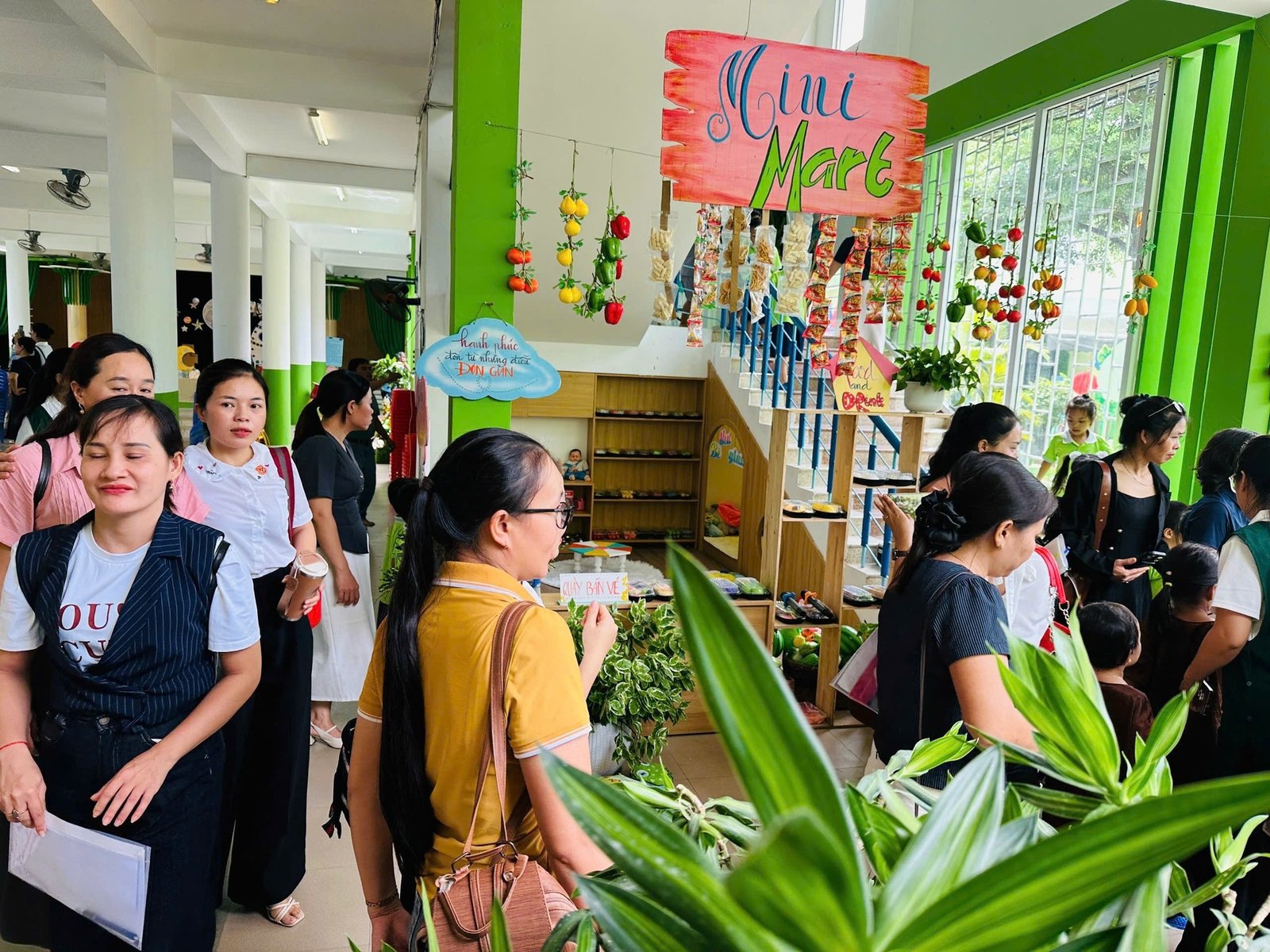 Trong buổi làm việc, đoàn đã tham quan môi trường trong và ngoài lớp học, tìm hiểu cách xây dựng môi trường giáo dục lấy trẻ làm trung tâm, đồng thời trao đổi, học tập về công tác quản lý, các loại hồ sơ – sổ sách và hoạt động chuyên môn của nhà trường.