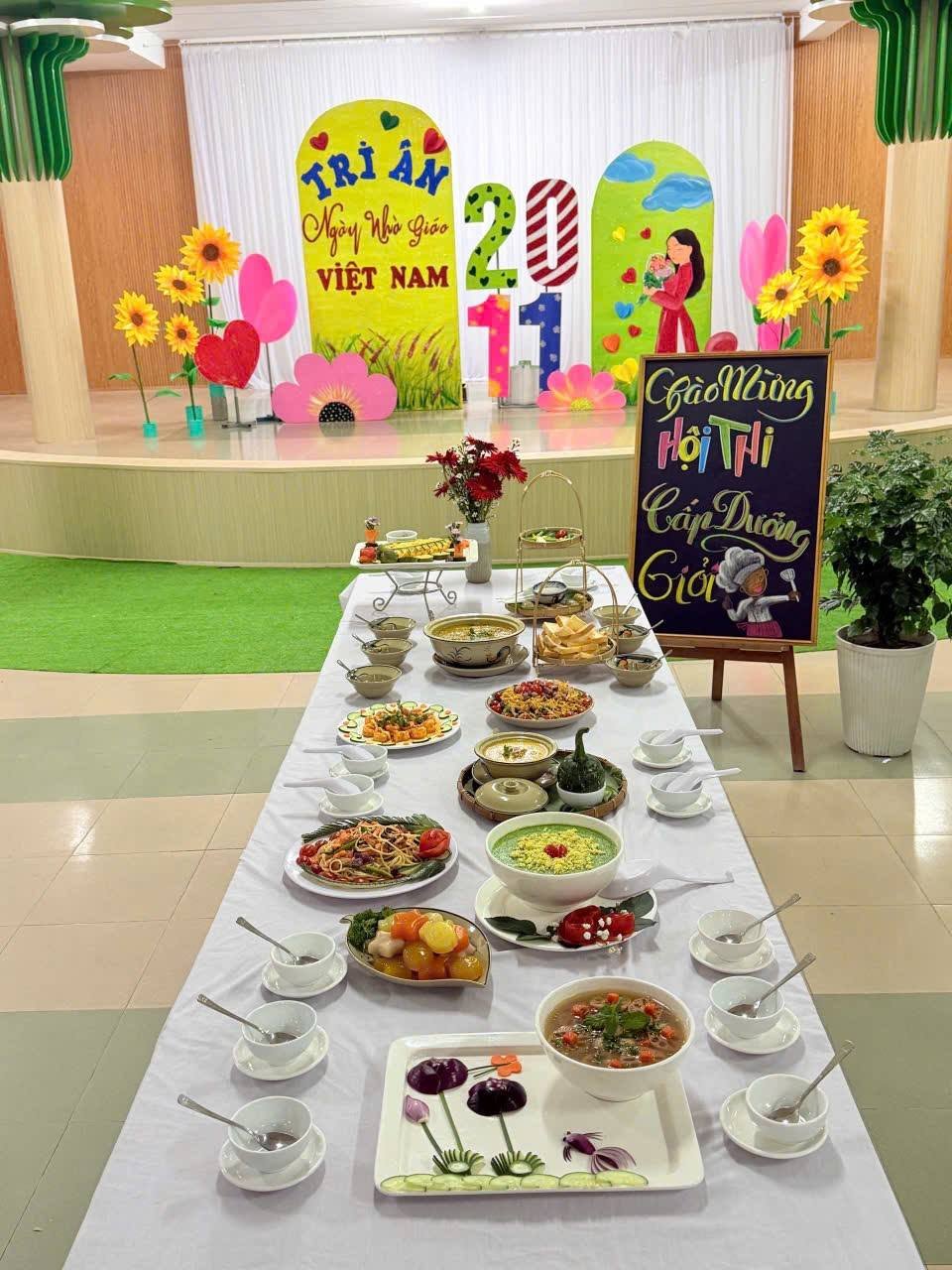 Hòa cùng không khí chào đón Ngày Nhà giáo Việt Nam 20/11, Trường Mầm non Anh Đào đã tổ chức Hội thi Cấp dưỡng giỏi với sự tham gia sôi nổi của các cô cấp dưỡng và sự đánh giá công tâm từ Ban giám khảo. 🍲 Các đội thi đã mang đến nhiều món ăn không chỉ đẹp mắt mà còn đảm bảo dinh dưỡng, sáng tạo trong cách trình bày và chú trọng đến khẩu vị của trẻ. ✨ Hội thi là dịp để các cô giao lưu, học hỏi và nâng cao tay nghề, góp phần chăm sóc bữa ăn cho các bé ngày càng tốt hơn. ☘️Xin gửi lời chúc mừng và cảm ơn đến tất cả các cô cấp dưỡng đã chuẩn bị chỉnh chu, thể hiện sự tận tâm và nhiệt huyết với nghề. 🌺 Nhân dịp 20/11, kính chúc quý các cô và toàn thể cán bộ, nhân viên Trường Mầm non Anh Đào luôn mạnh khỏe, hạnh phúc và tiếp tục đồng hành cùng nhà trường trong hành trình nuôi dưỡng – giáo dục các con.