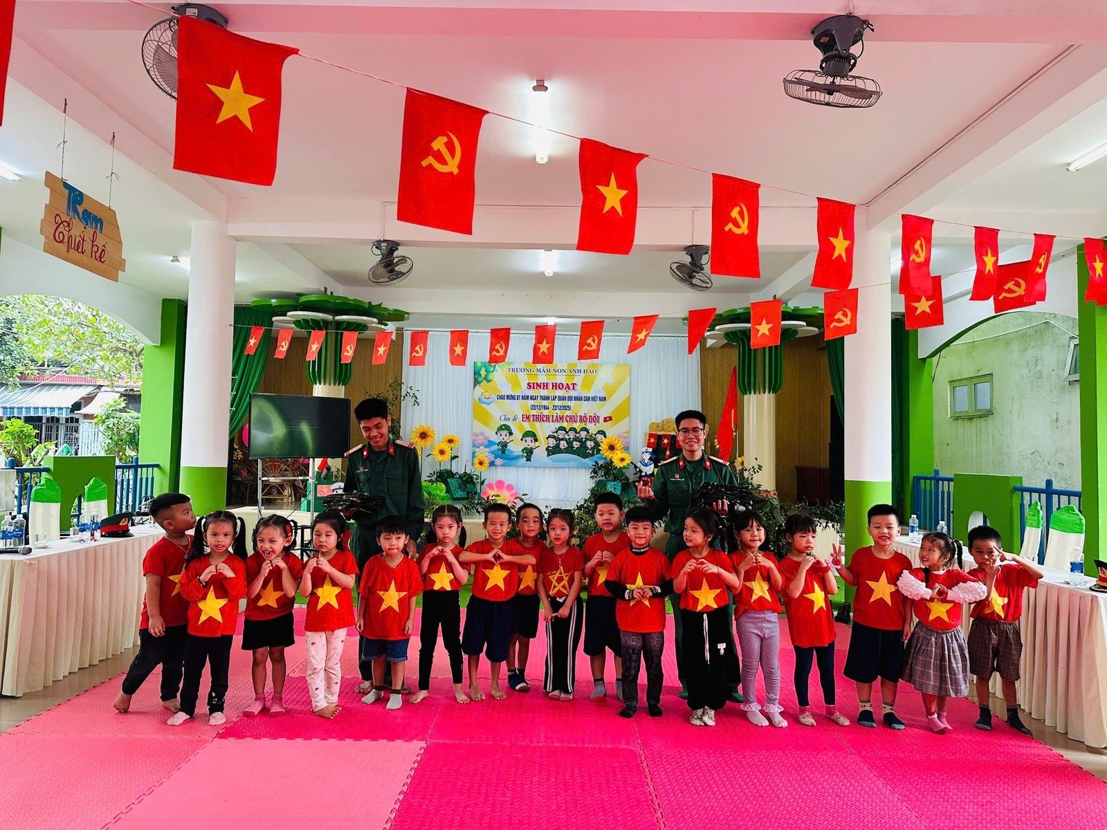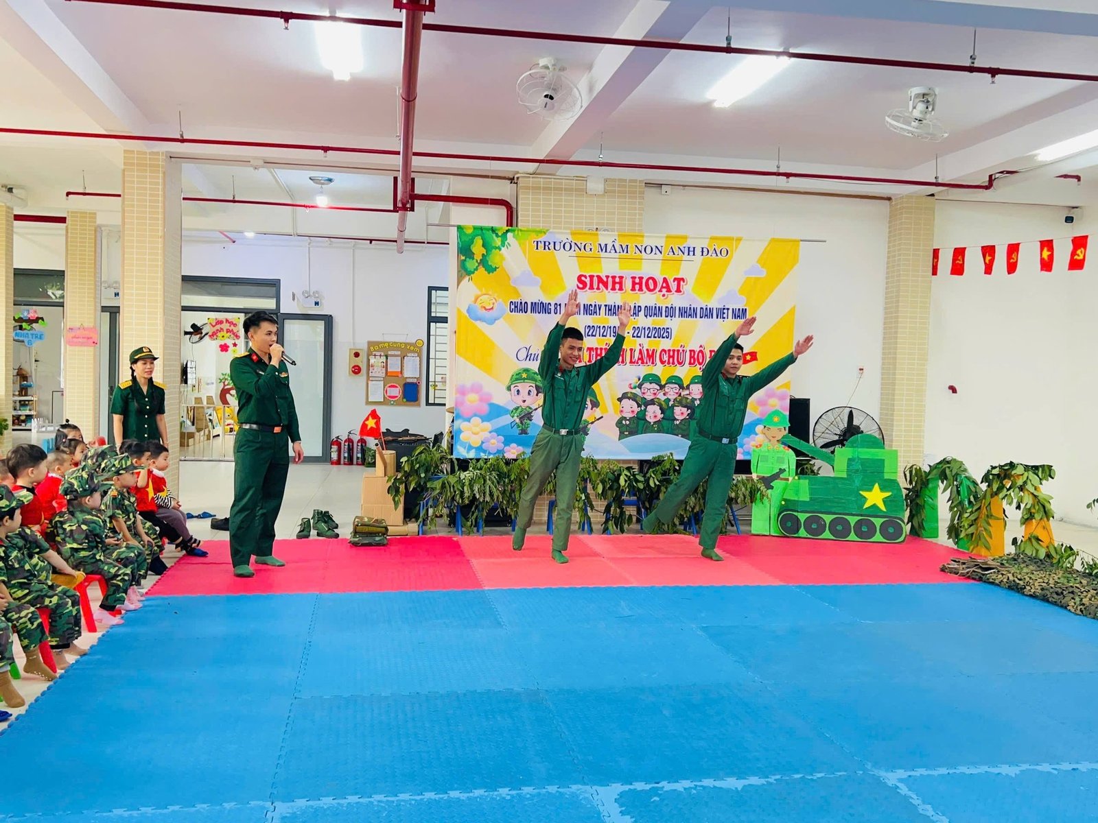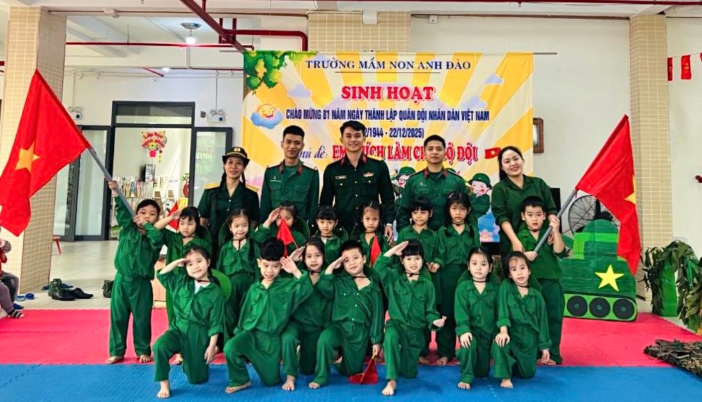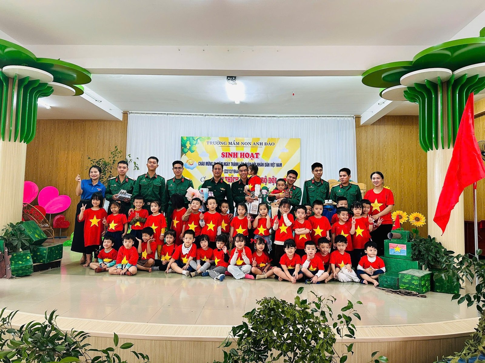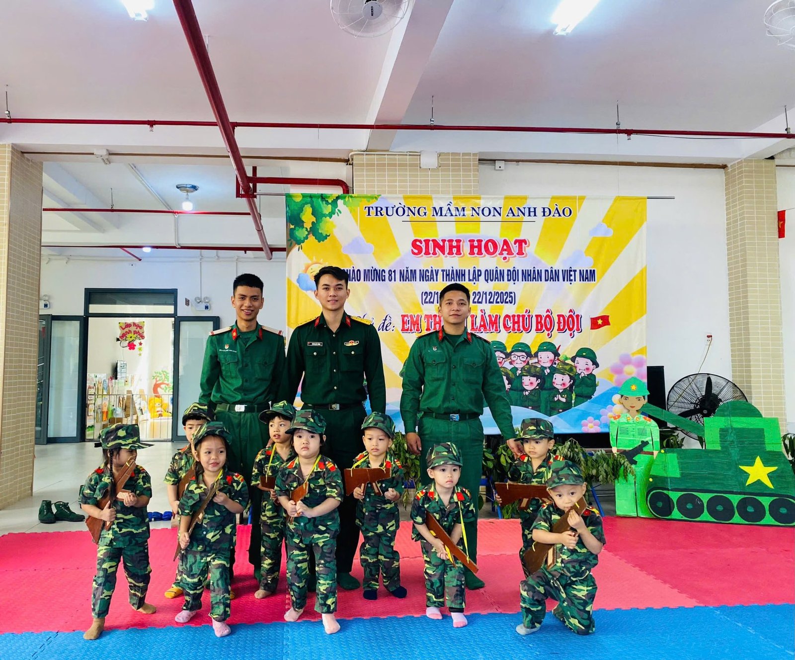 💐💐Nhân ngày 22/12/2025 các chú bộ đội đã đến thăm trường MN Anh Đào cùng tham gia các hoạt động cùng các con thật vui và ý nghĩa❤️. Qua hoạt động này các con được hiểu thêm về hình ảnh chú bộ đội, tình yêu quê hương đất nước.❤️❤️ Những ánh mắt háo hức, nụ cười rạng rỡ của các con chính là khoảnh khắc thật đẹp trong ngày hôm nay. 👬👫 Mời ba mẹ và các cô, chú cùng ngắm nhìn những hình ảnh đáng yêu của các con nhé ❤️❤️❤️