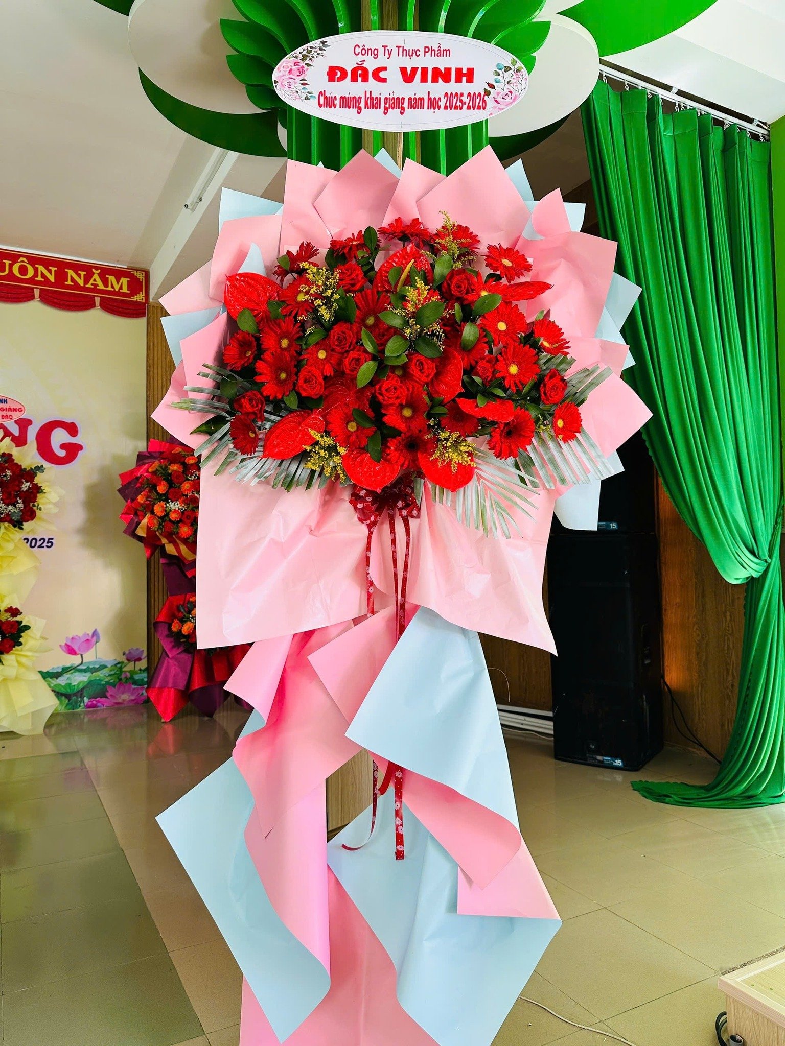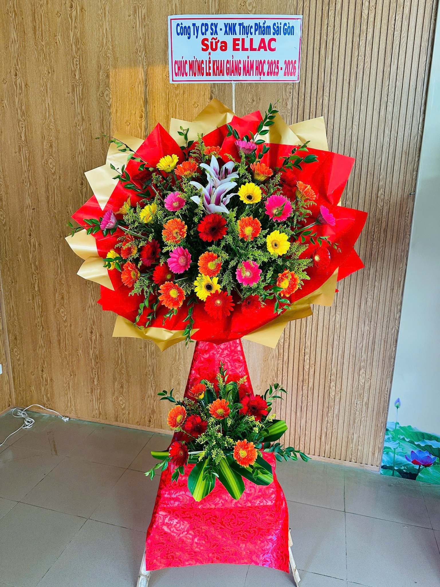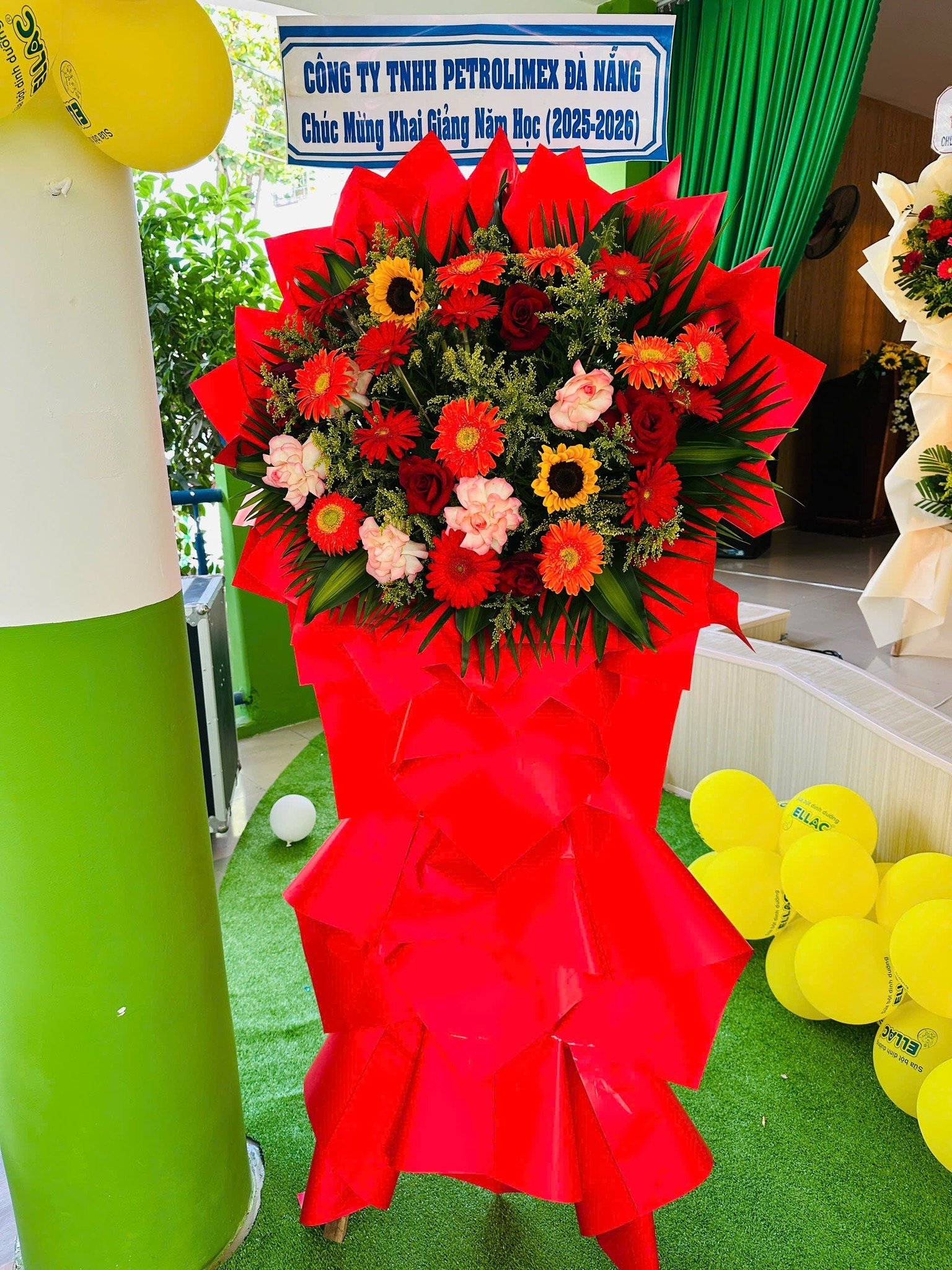 Sân trường rực rỡ hơn bao giờ hết với những lẵng hoa tươi thắm, mang theo lời chúc mừng và niềm tin yêu dành cho thầy cô và các bé.