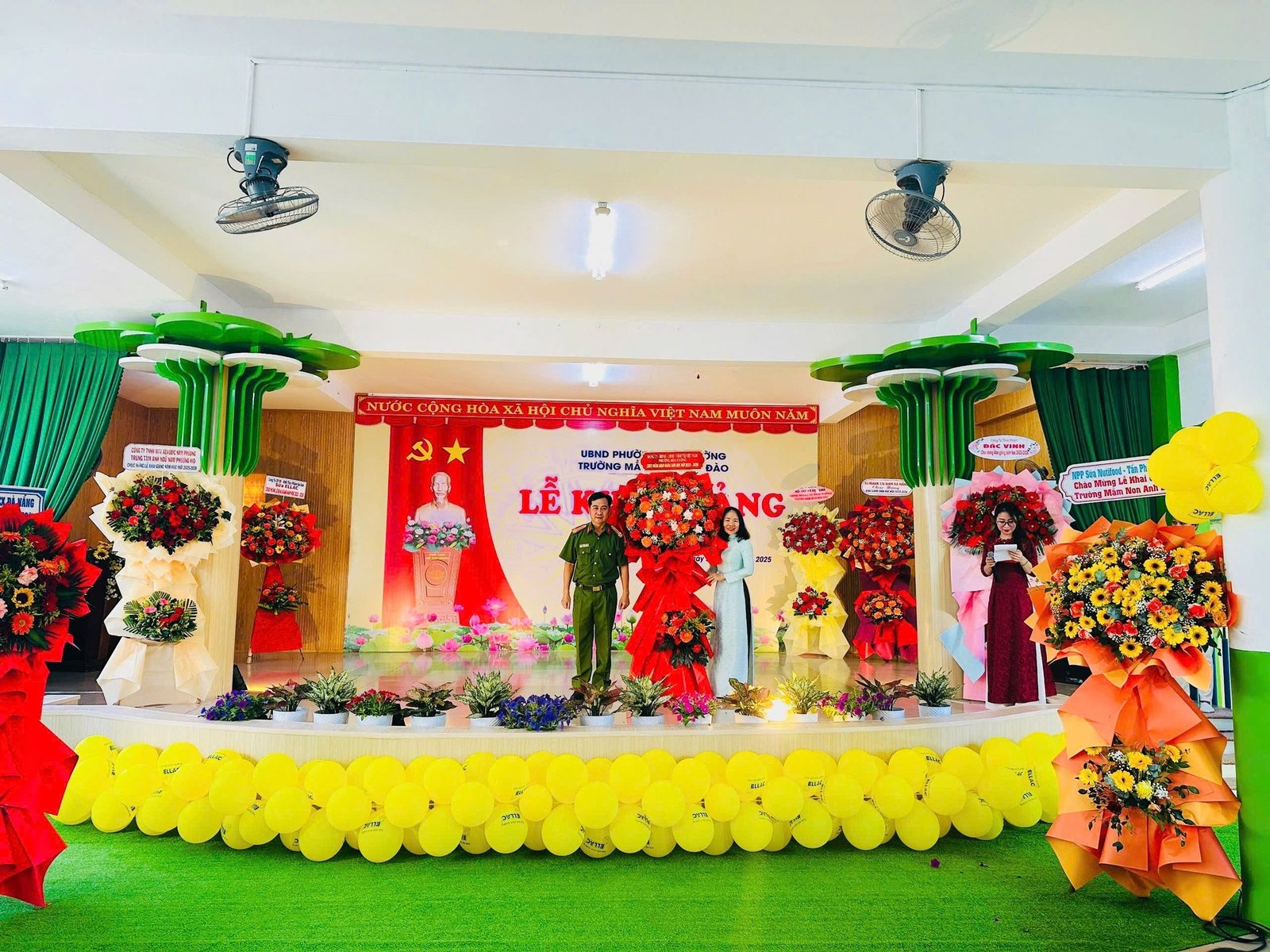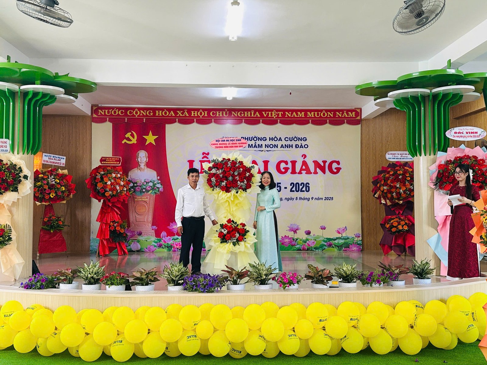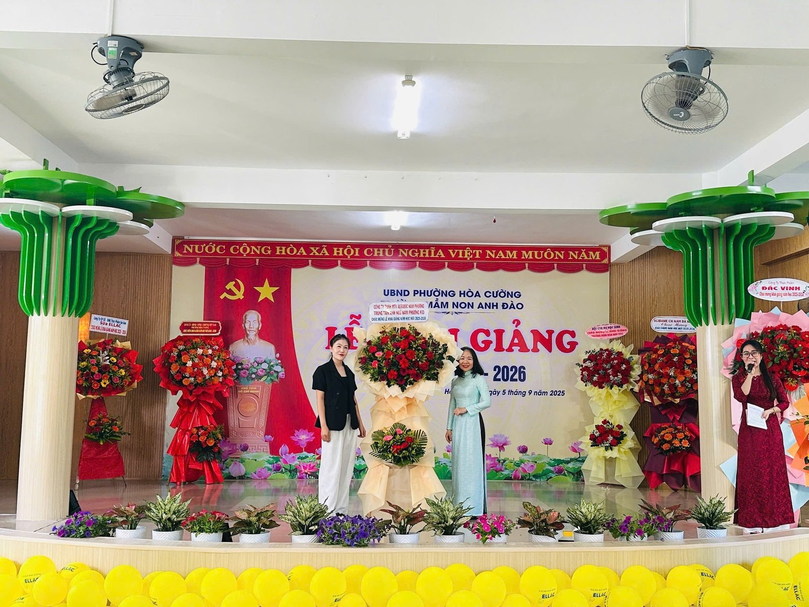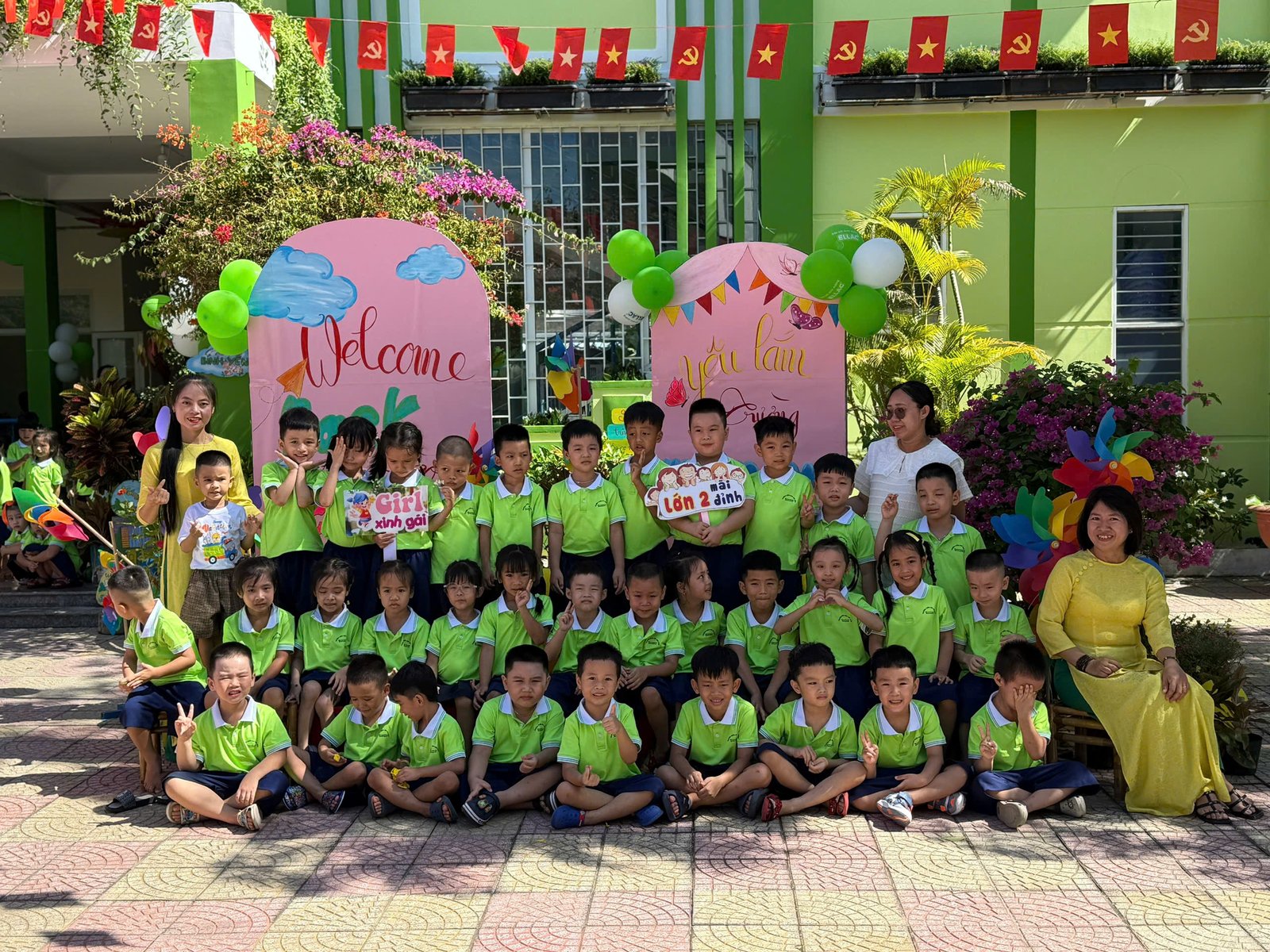 Sân trường rực rỡ hơn bao giờ hết với những lẵng hoa tươi thắm, mang theo lời chúc mừng và niềm tin yêu dành cho thầy cô và các bé.