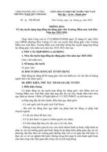 Thông báo Về việc tuyển dụng hợp đồng lao động giáo viên mầm non năm học 2025-2026