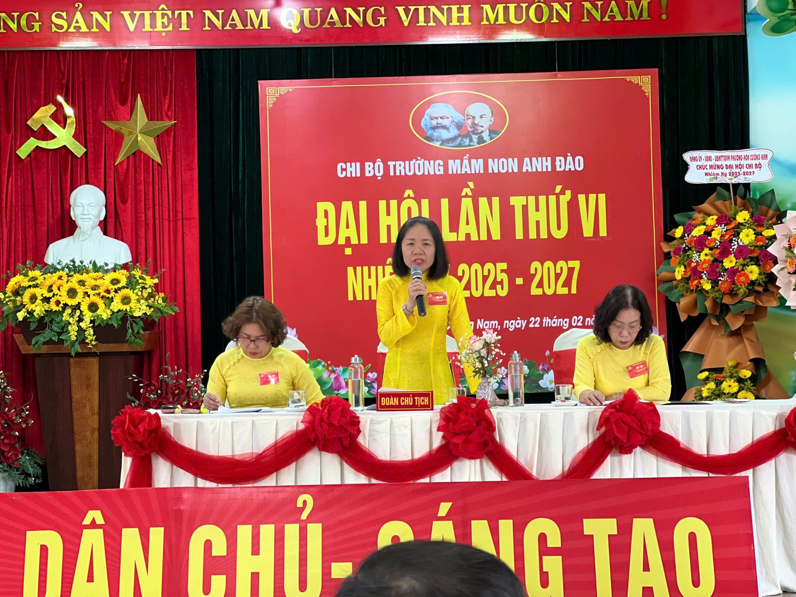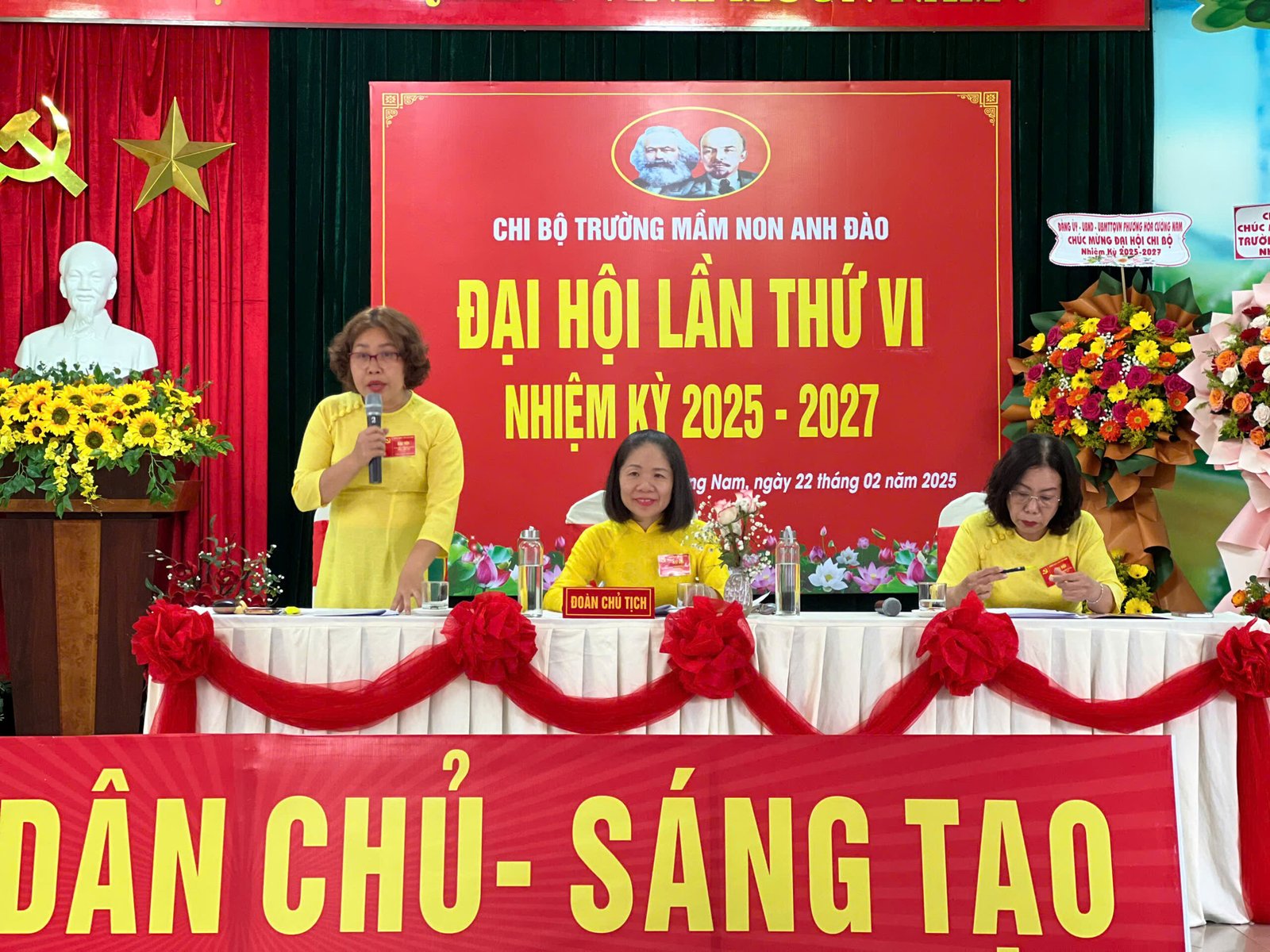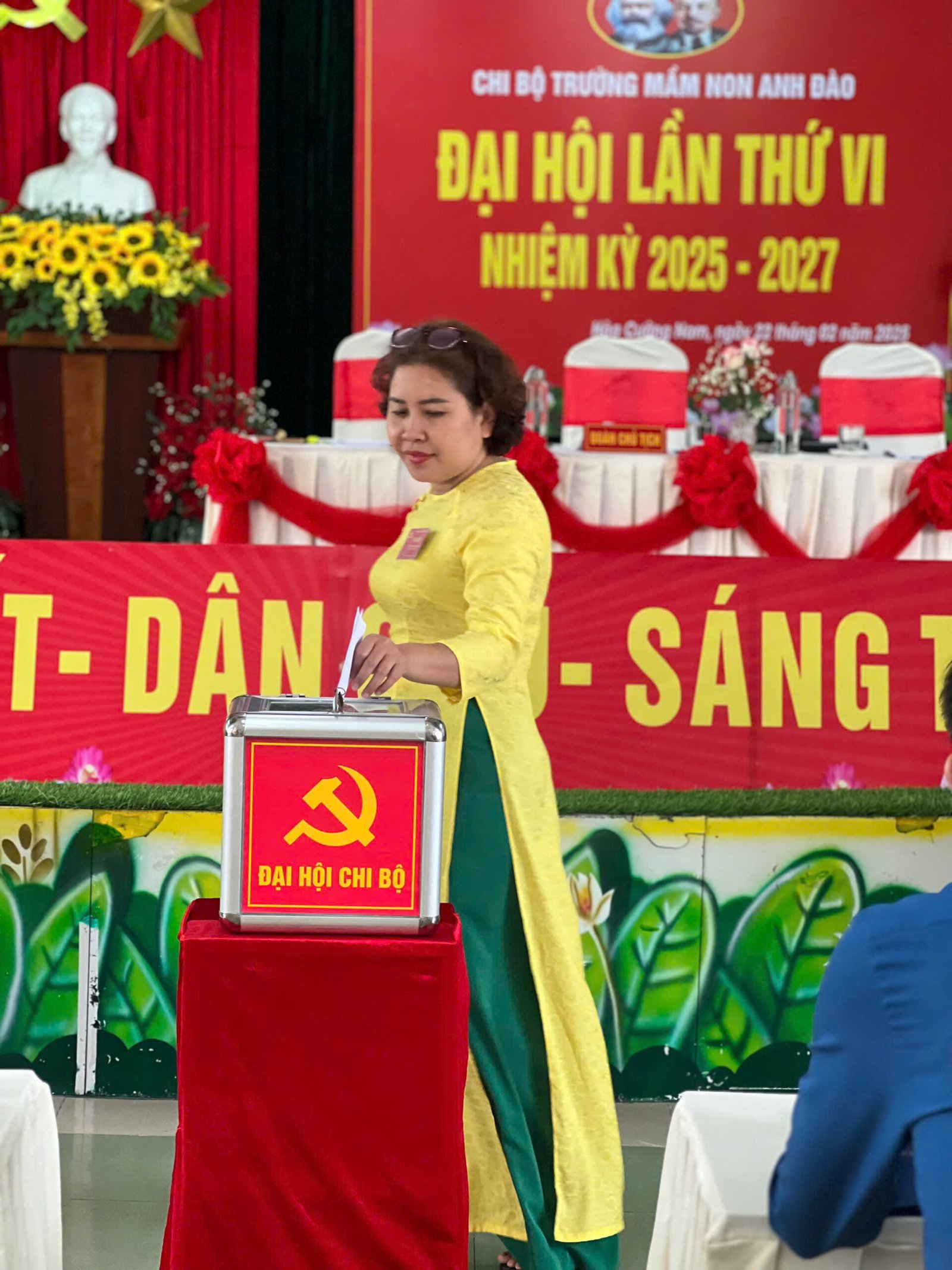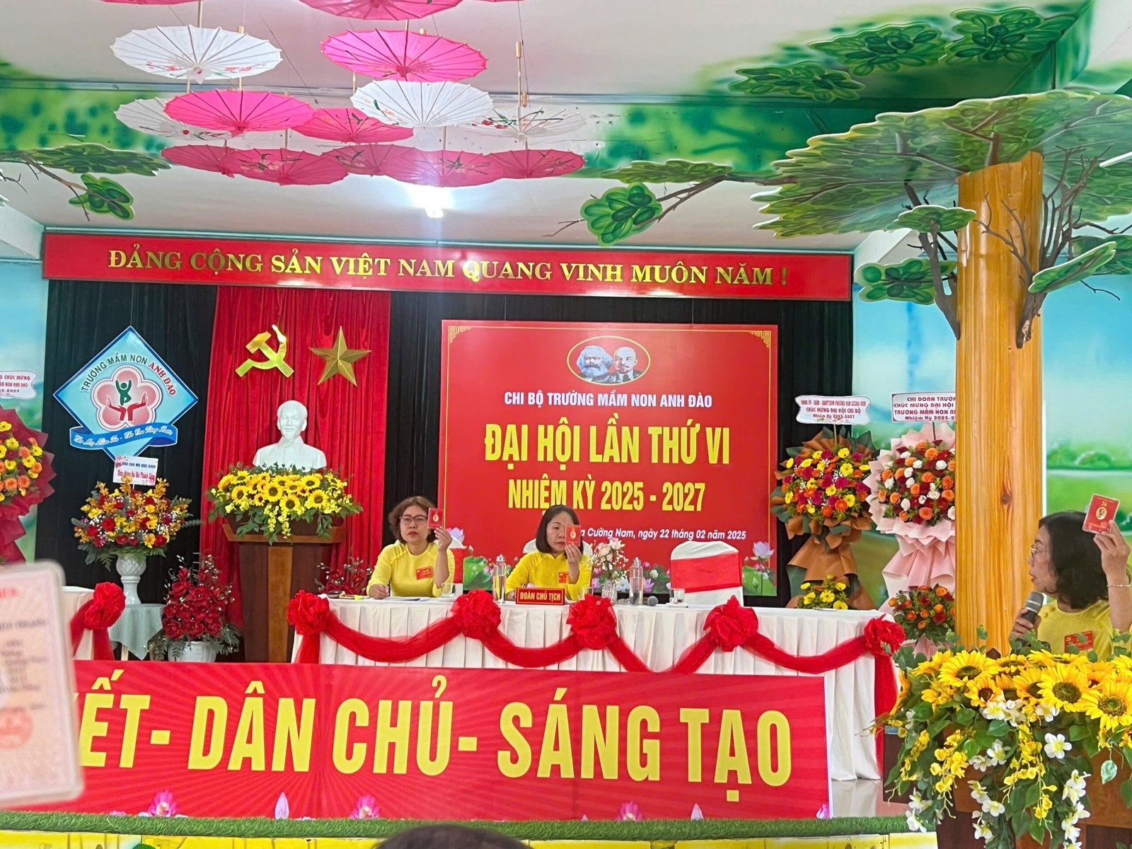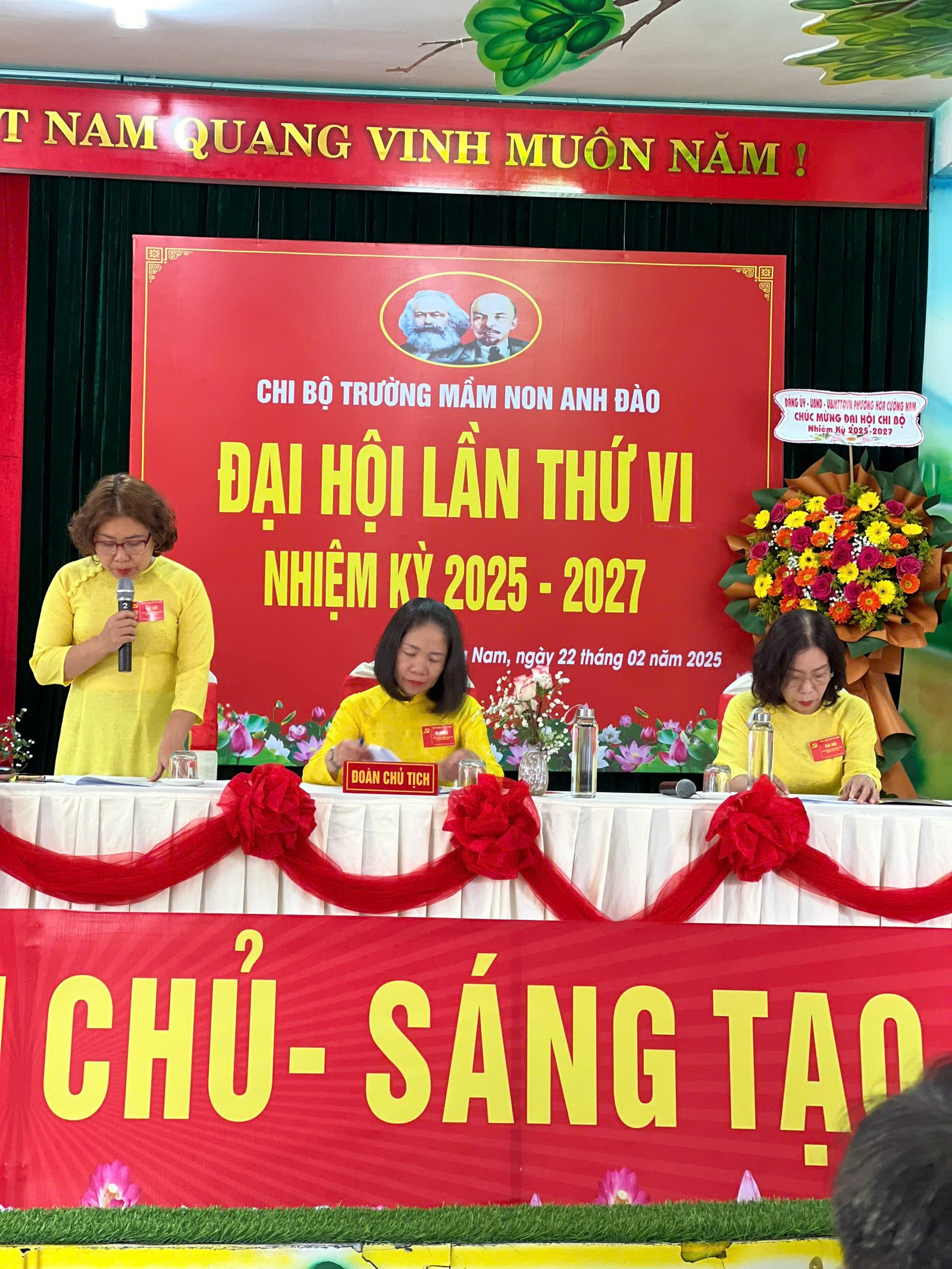 Ngày 22/02/2025, Chi bộ Trường Mầm non Anh Đào long trọng tổ chức Đại hội Chi bộ, nhiệm kỳ 2025-2027. Với tinh thần làm việc khẩn trương, nghiêm túc, đoàn kết, dân chủ và trách nhiệm, Đại hội đã diễn ra thành công tốt đẹp.