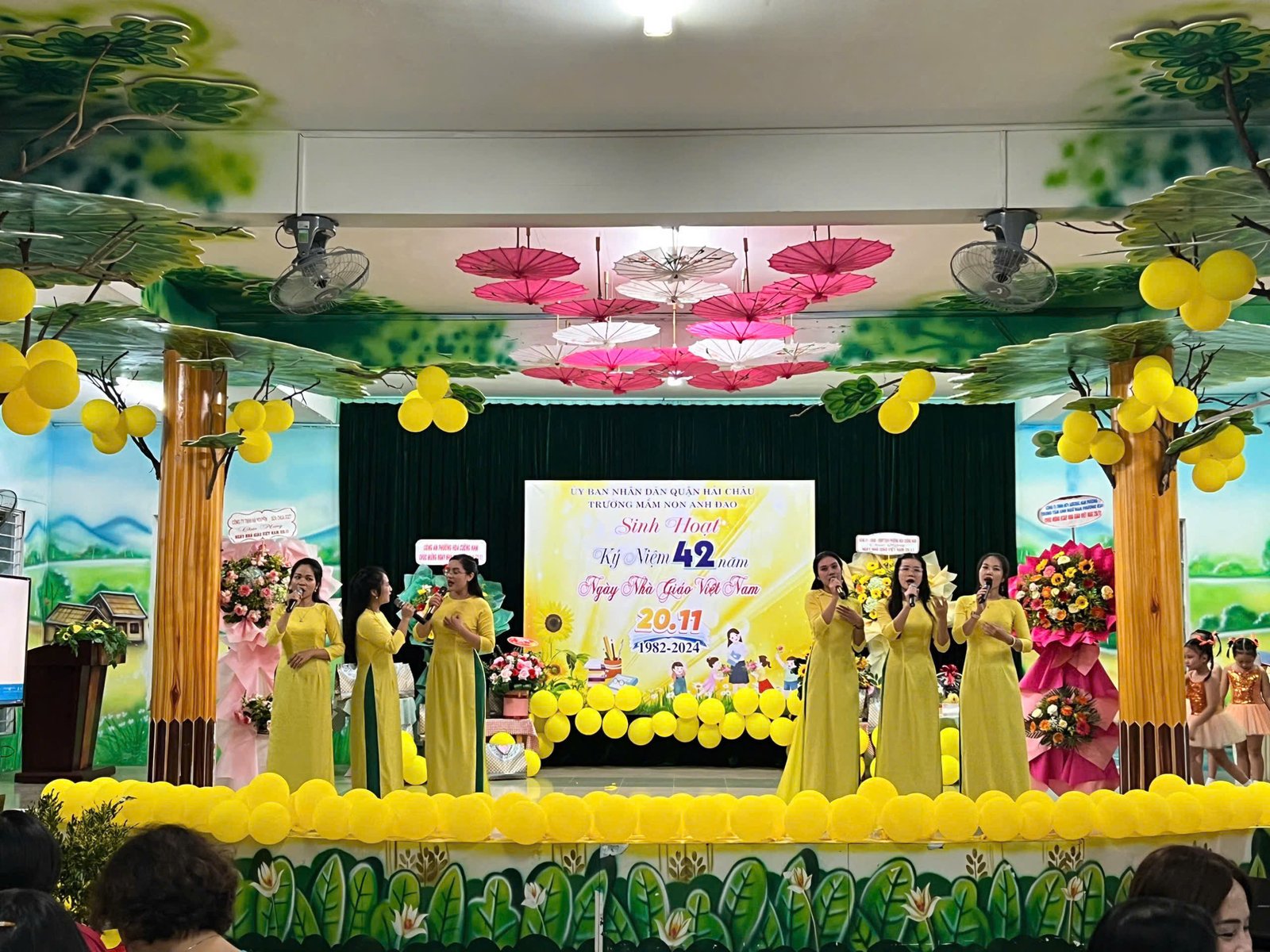 Hôm nay trong không khí hân hoan của buổi lễ sinh hoạt kỉ niệm 42 năm ngày Nhà giáo Việt Nam. Nhà trường thật vinh dự khi được đón tiếp các quý vị đại biểu từ các đơn vị: Đảng ủy – UBND – UBMTTQVN phường Hoà Cường Nam, Công an phường Hoà Cường Nam, Tiểu đoàn 81/Lữ đoàn 954 Hải Quân, công ty TNHH MTV Aerobic Nam Phương, Trung tâm Anh Ngữ Nam Phương kids, Công ty TNHH Hà Nguyên – sữa chua GOZT, Hội cha mẹ học sinh cùng các cô giáo hưu trí về trường cùng ôn lại truyền thống tốt đẹp của ngày 20/11. Không biết nói gì hơn. Tập thể CBGVNV trường MN Anh Đào xin chân thành cảm ơn những lẵng hoa tươi thắm, những món quà ý nghĩa cùng tình cảm thân thương của các cấp lãnh đạo, các đơn vị và các cô hưu trí đã dành tặng cho nhà trường ạ!