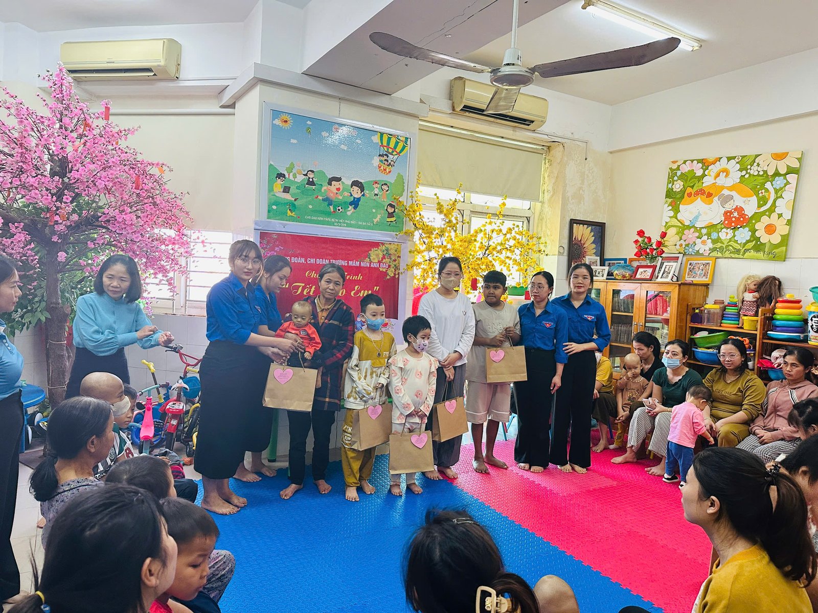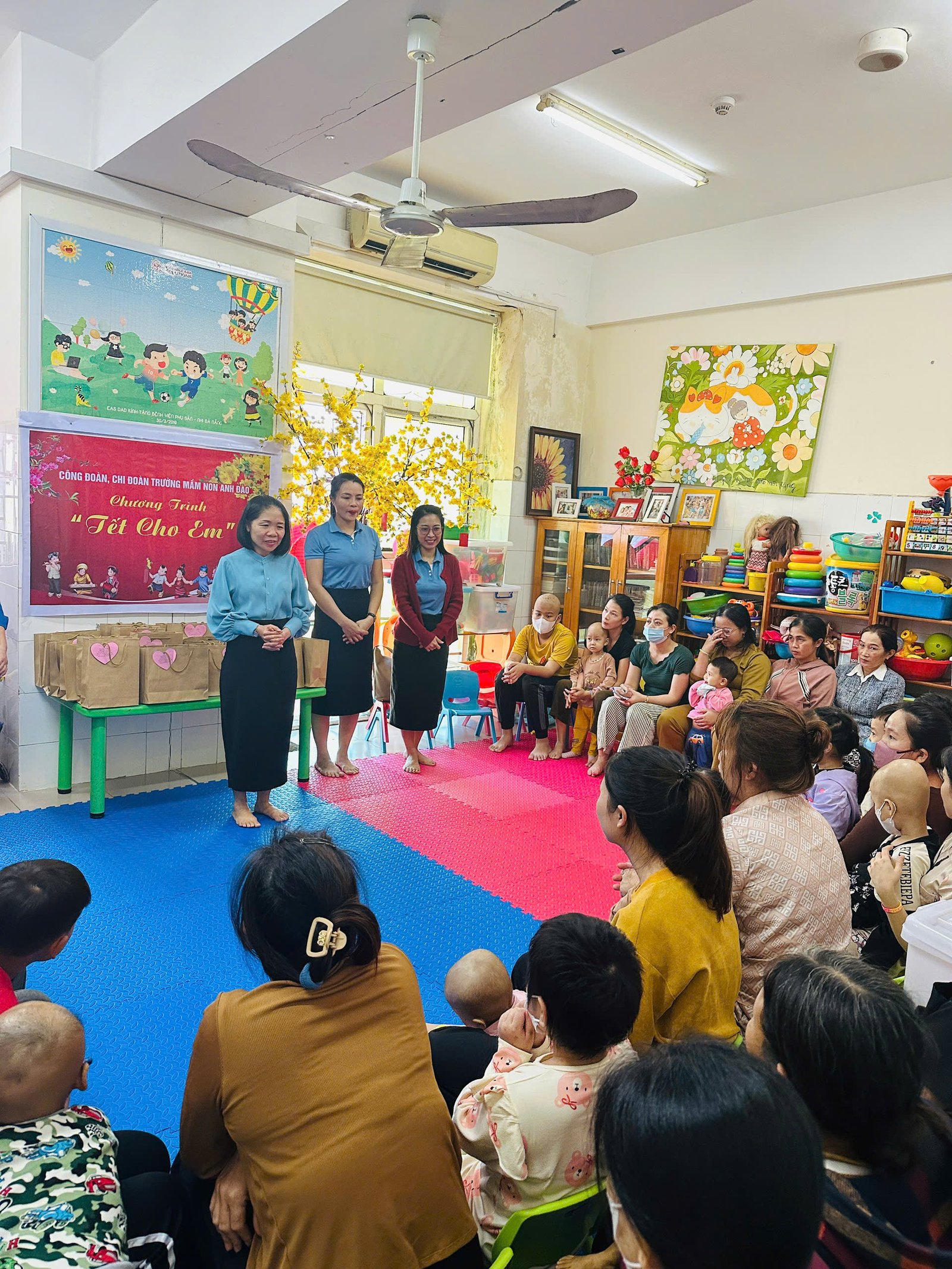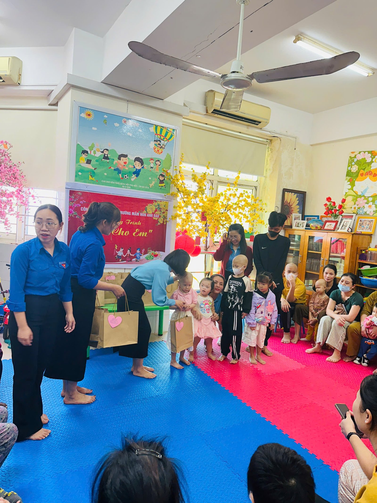 💝Lời đầu tiên, thay mặt BCH công đoàn xin gởi lời cảm ơn sâu sắc và chân thành nhất đến Quý Phụ huynh cùng các con, các mạnh thường quân, các cá nhân, tập thể CBGVNV trường MN Anh Đào đã gửi những món quà yêu thương đến các bạn nhỏ. Hơn 80 suất quà đã được các cô giáo gửi đến các bạn nhỏ đang điều trị ung thư tại tầng 10 – Bệnh viện sản nhi Đà Nẵng. 🌷 Mong rằng với những món quà nhỏ sẽ giúp các con vững tin hơn trên hành trình chiến thắng bệnh tật ❤️