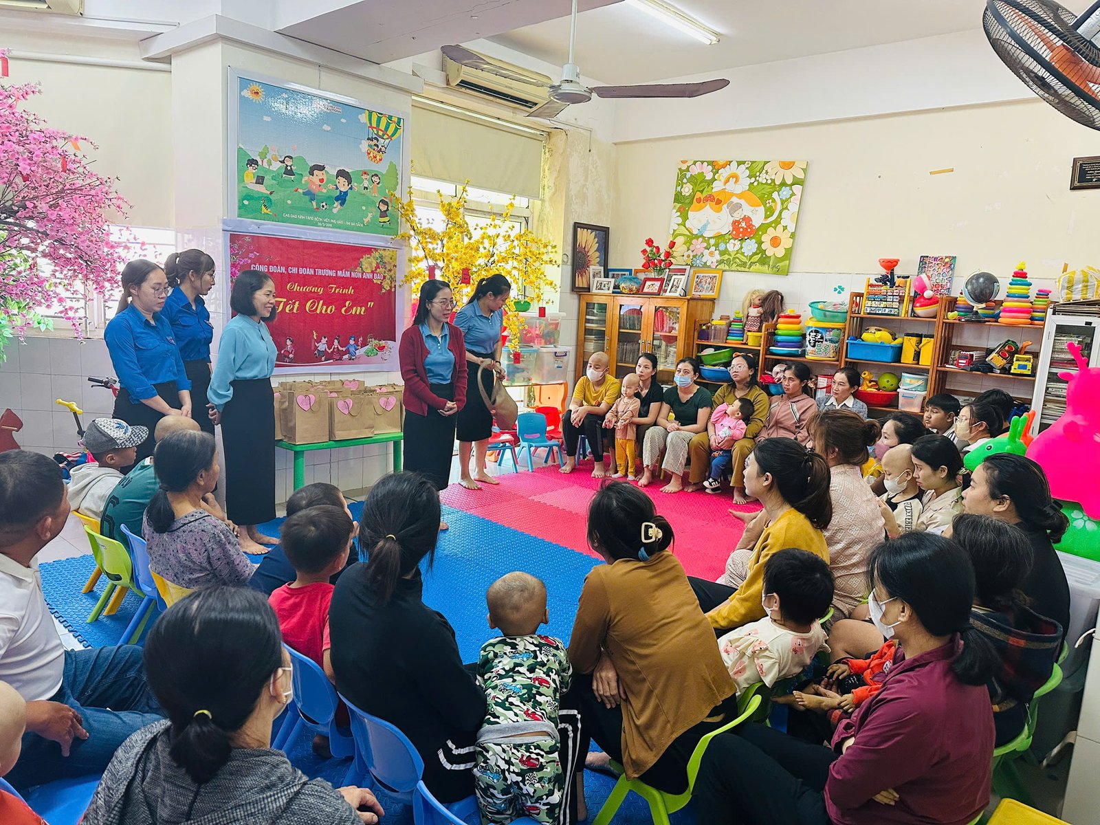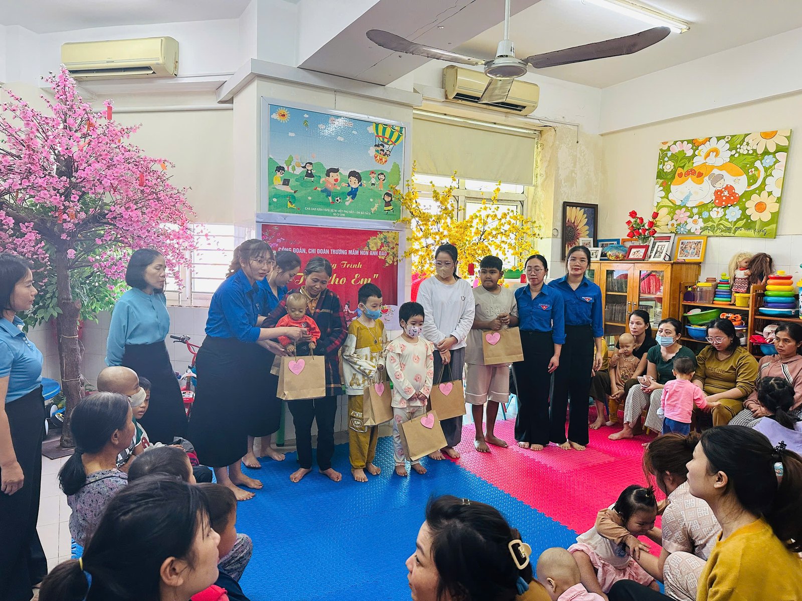 💝Lời đầu tiên, thay mặt BCH công đoàn xin gởi lời cảm ơn sâu sắc và chân thành nhất đến Quý Phụ huynh cùng các con, các mạnh thường quân, các cá nhân, tập thể CBGVNV trường MN Anh Đào đã gửi những món quà yêu thương đến các bạn nhỏ. Hơn 80 suất quà đã được các cô giáo gửi đến các bạn nhỏ đang điều trị ung thư tại tầng 10 – Bệnh viện sản nhi Đà Nẵng. 🌷 Mong rằng với những món quà nhỏ sẽ giúp các con vững tin hơn trên hành trình chiến thắng bệnh tật ❤️