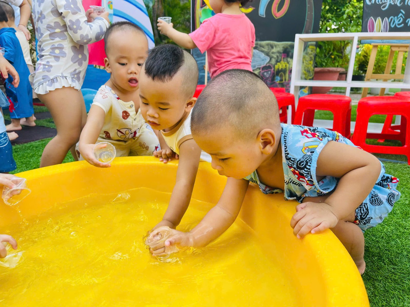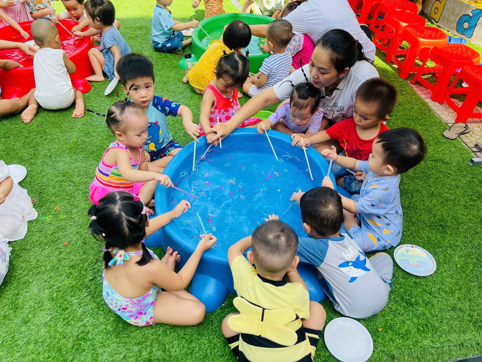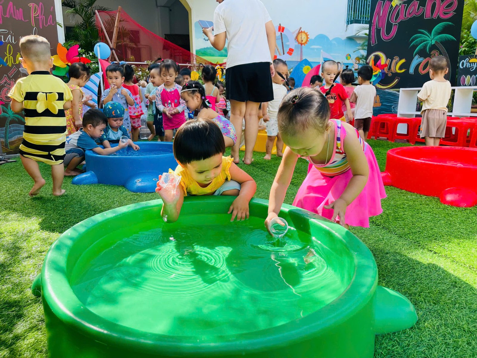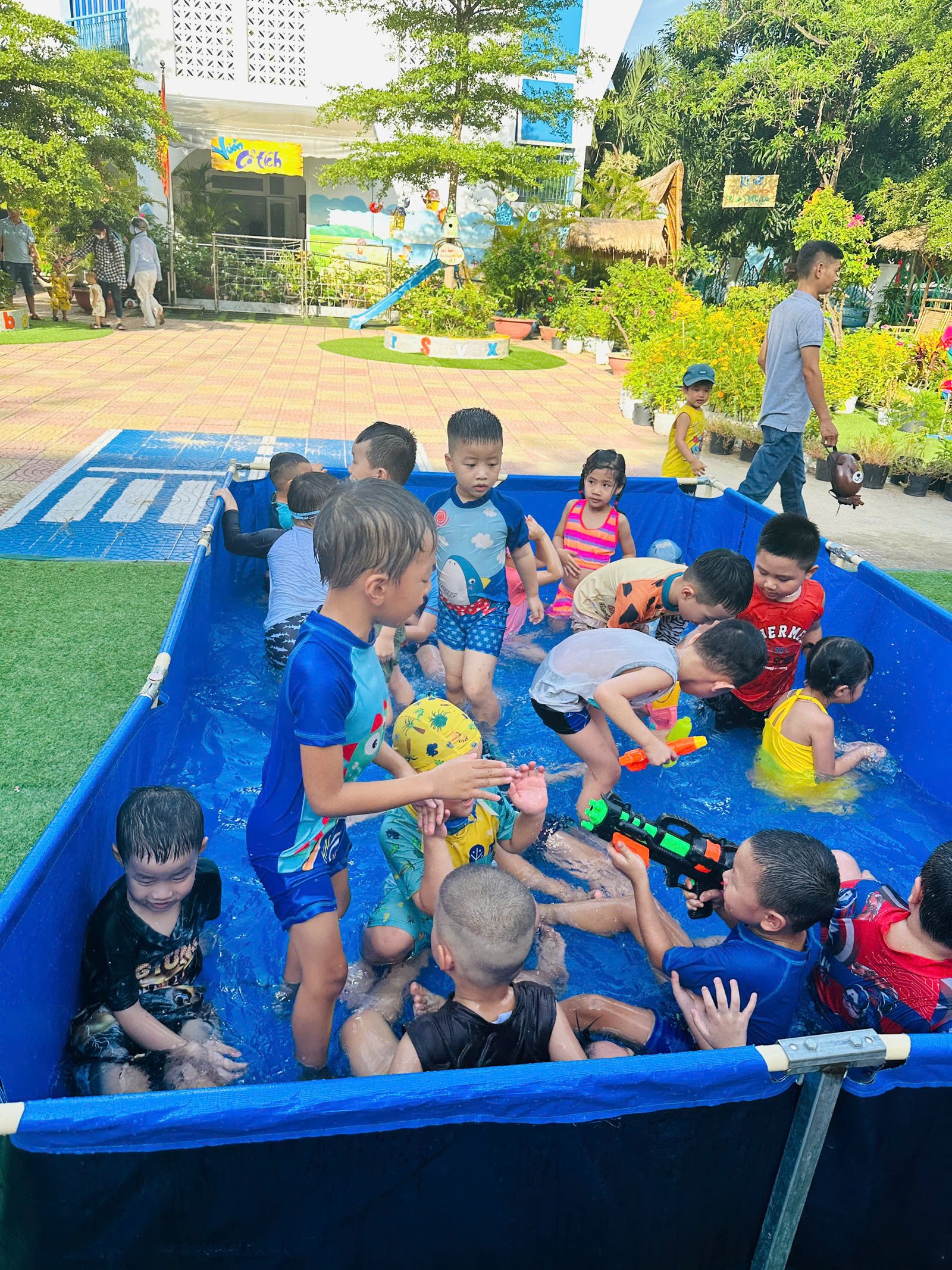 Các con thỏa sức nô đùa, vùng vẫy trong làn nước mát của hồ bơi