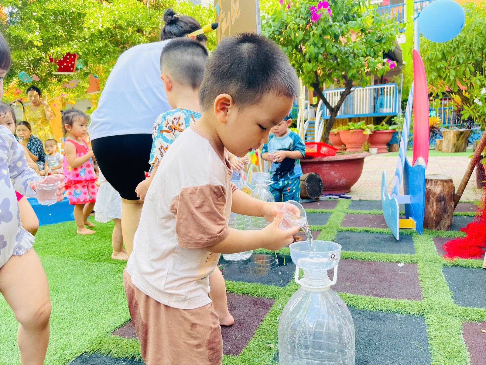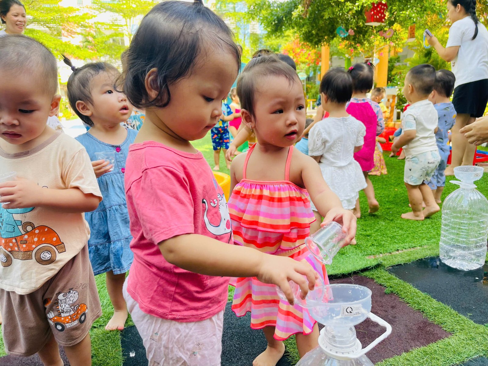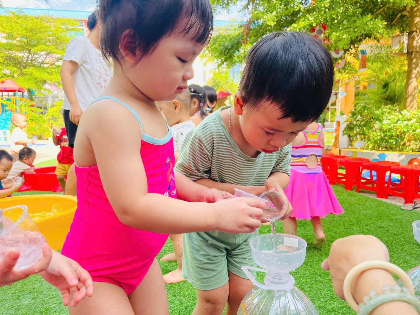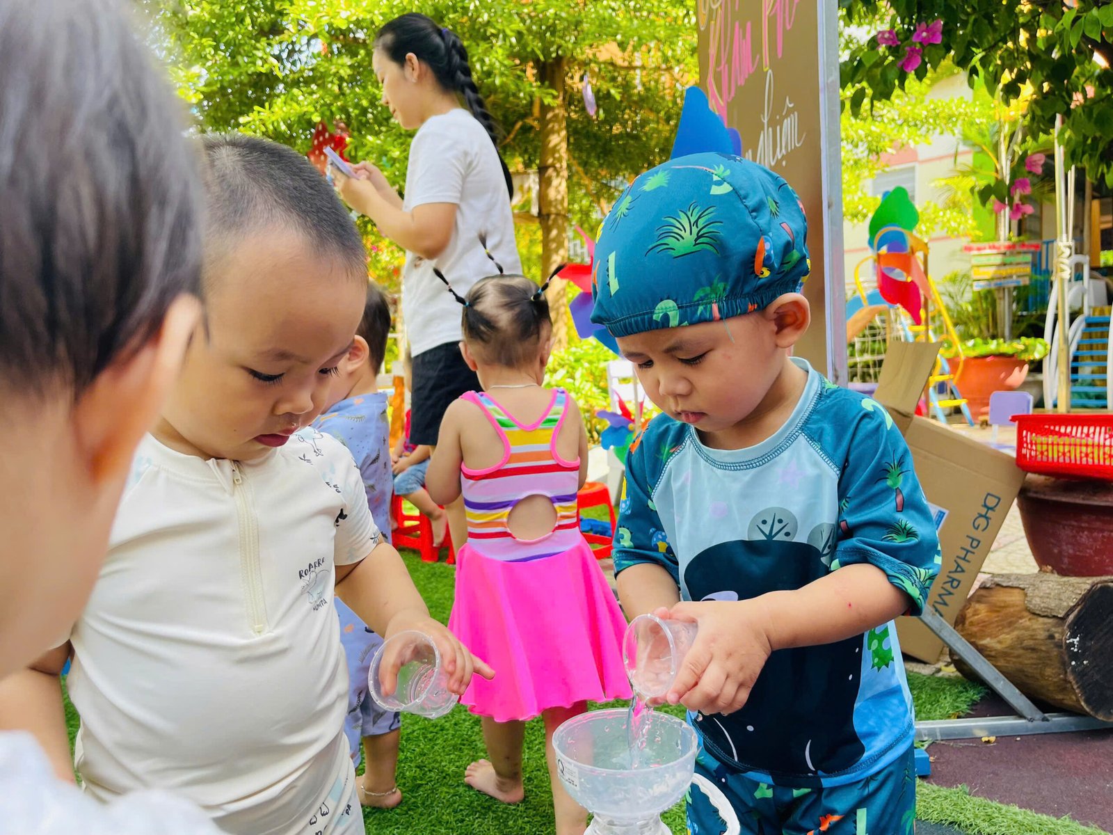 Các con thỏa sức nô đùa, vùng vẫy trong làn nước mát của hồ bơi