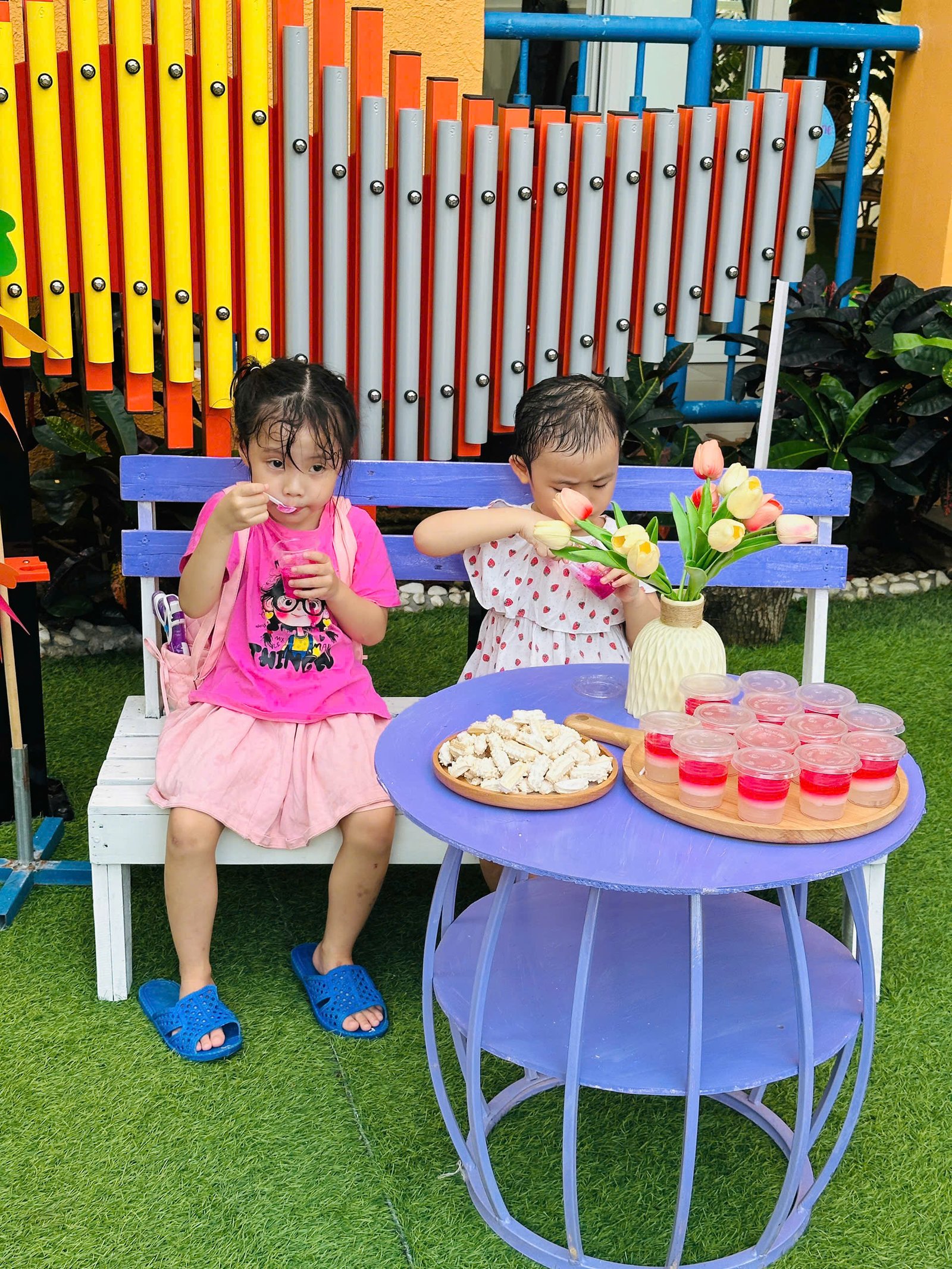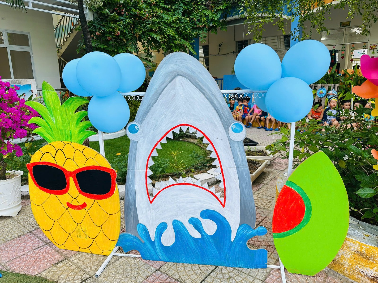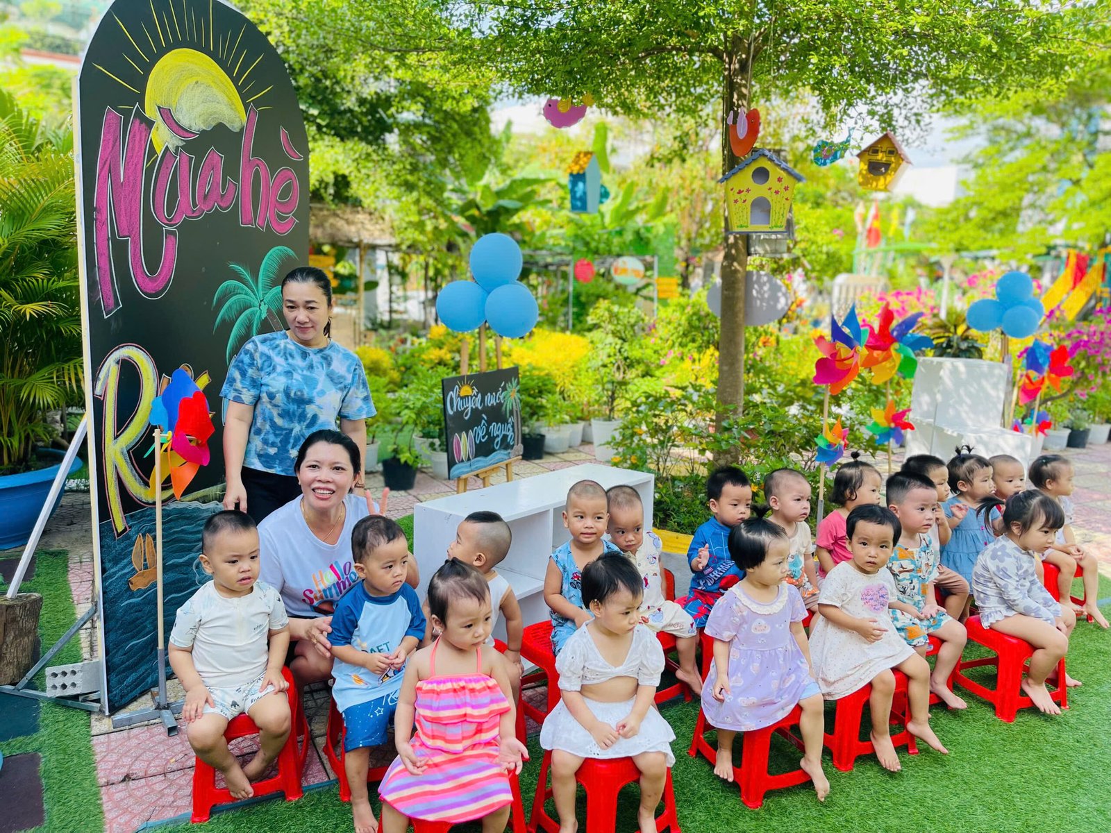 Sân trường ngập nắng, rực rỡ sắc hoa, tiếng cười vang lên trong trẻo như bản nhạc hè dịu dàng…