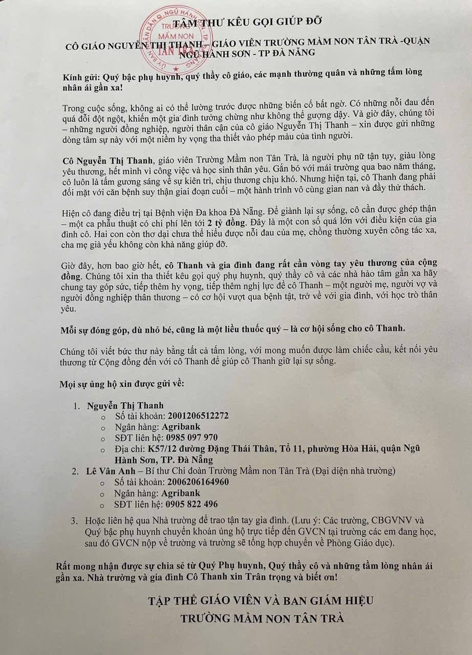 Món quà tuy nhỏ nhưng là tấm lòng yêu thương, sự sẻ chia chân thành, hy vọng sẽ tiếp thêm động lực để cô Thanh vững vàng vượt qua giai đoạn khó khăn, sớm hồi phục sức khỏe và trở lại với mái trường thân yêu, nơi có các em nhỏ luôn mong ngóng cô quay về.