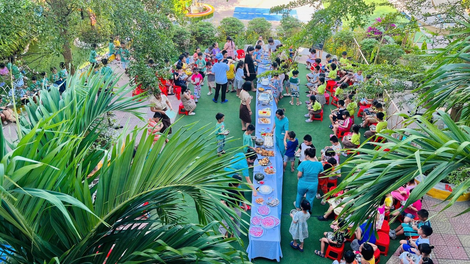 Hôm nay, các con đã có một buổi tiệc buffet thật vui và ấm cúng như một món quà nhỏ để đánh dấu chặng đường đã qua