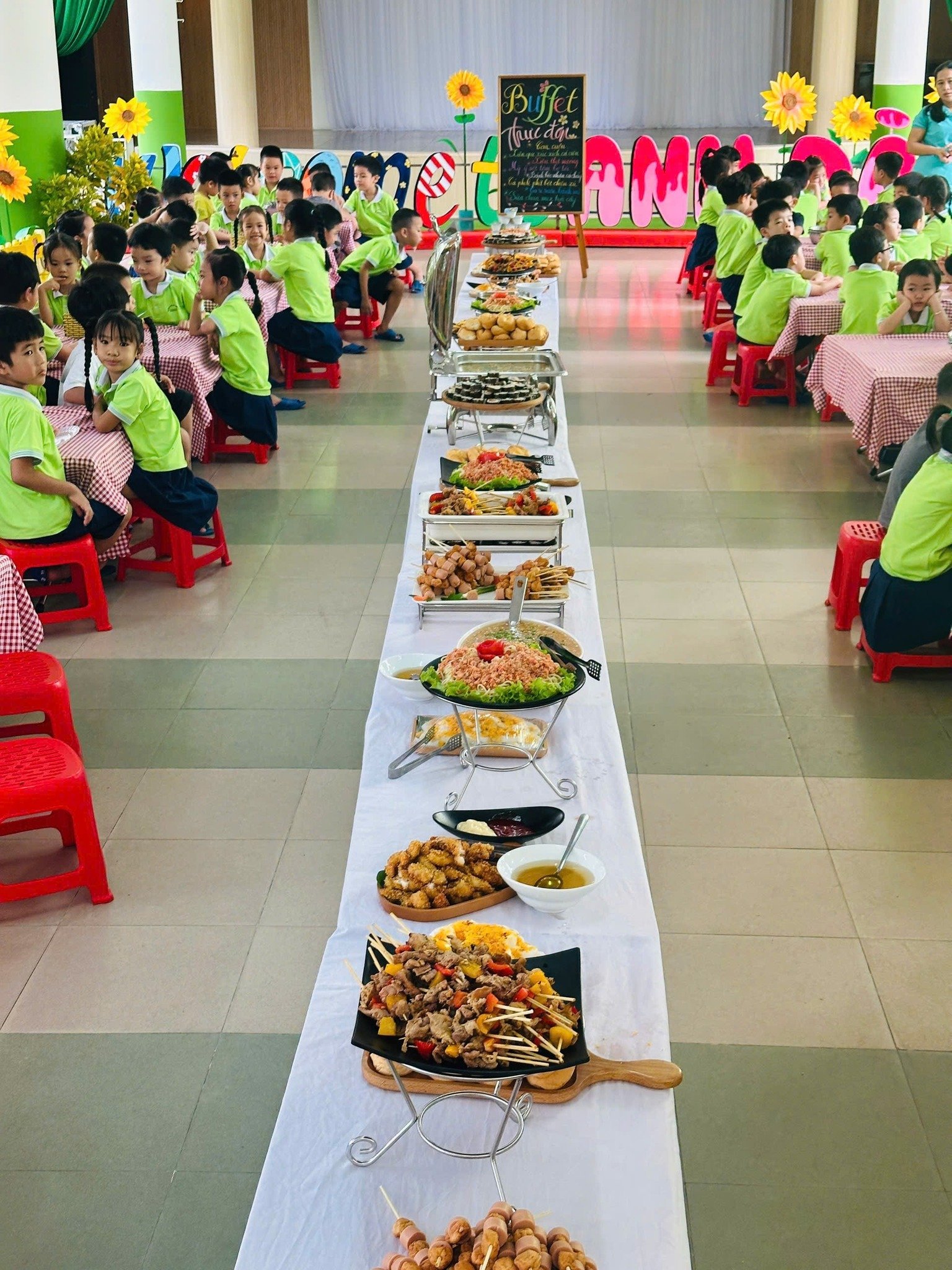 Buổi tiệc không chỉ là dịp để các con được trải nghiệm, rèn luyện kỹ năng tự phục vụ, khám phá thế giới ẩm thực phong phú, mà còn là khoảnh khắc ý nghĩa để các bé biết trân trọng tình yêu thương và những hy sinh thầm lặng của phụ nữ quanh mình.