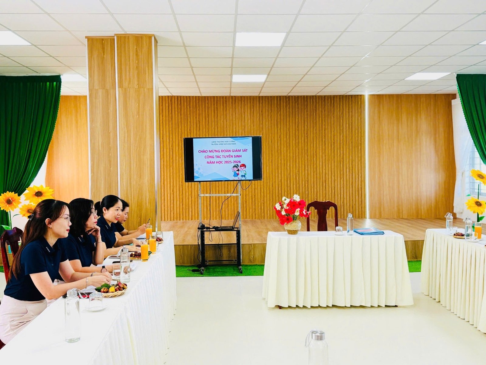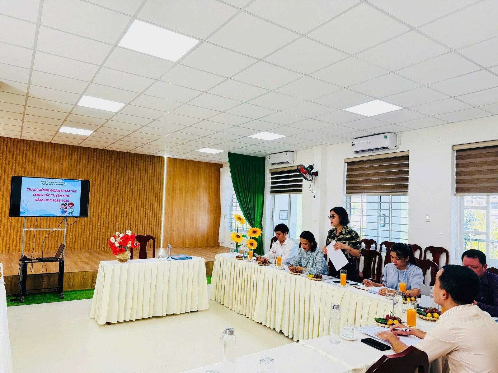 ☘️Tại buổi làm việc, nhà trường đã giới thiệu về chương trình chăm sóc — nuôi dưỡng — giáo dục, cơ sở vật chất, đội ngũ giáo viên và quy trình tuyển sinh; đồng thời dẫn đoàn tham quan các lớp học, khu vui chơi và phòng chức năng. Đoàn kiểm tra ghi nhận những nỗ lực chuẩn bị của nhà trường và trao đổi, góp ý nhằm tiếp tục hoàn thiện công tác tuyển sinh, đáp ứng yêu cầu giáo dục an toàn — thân thiện — chất lượng.