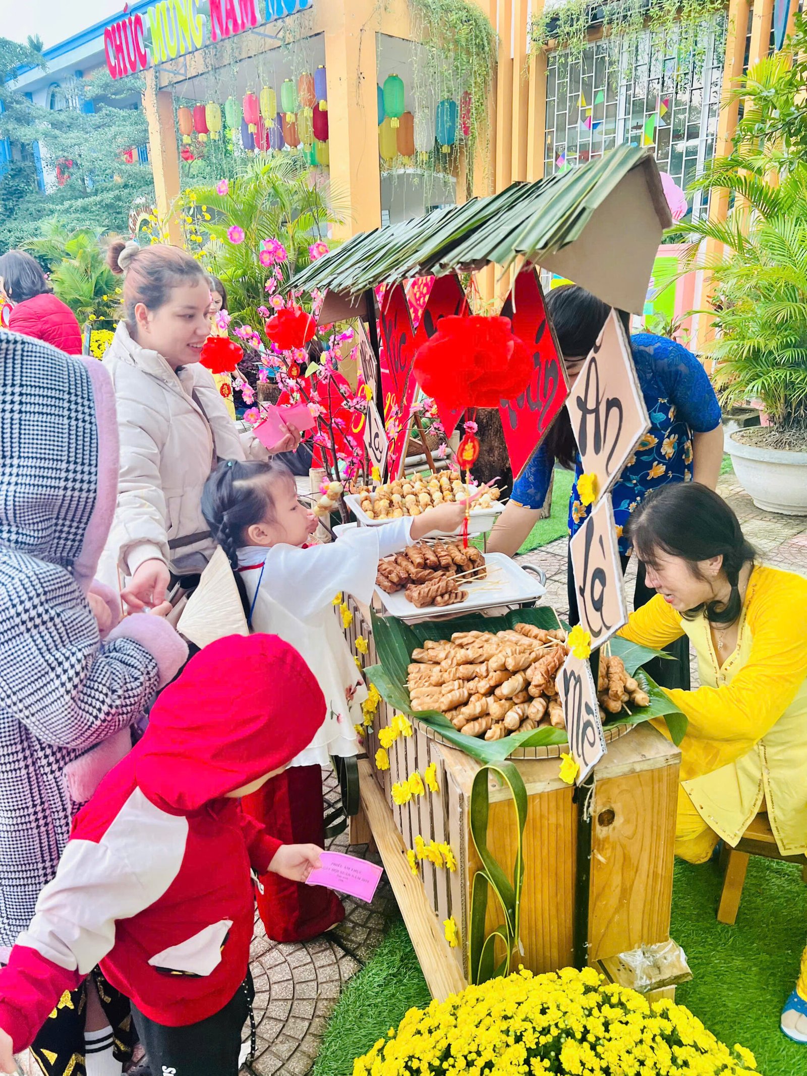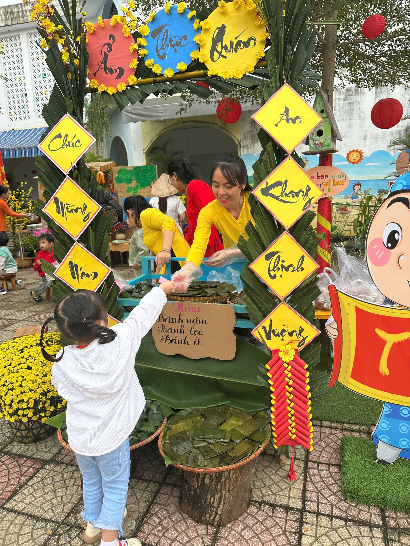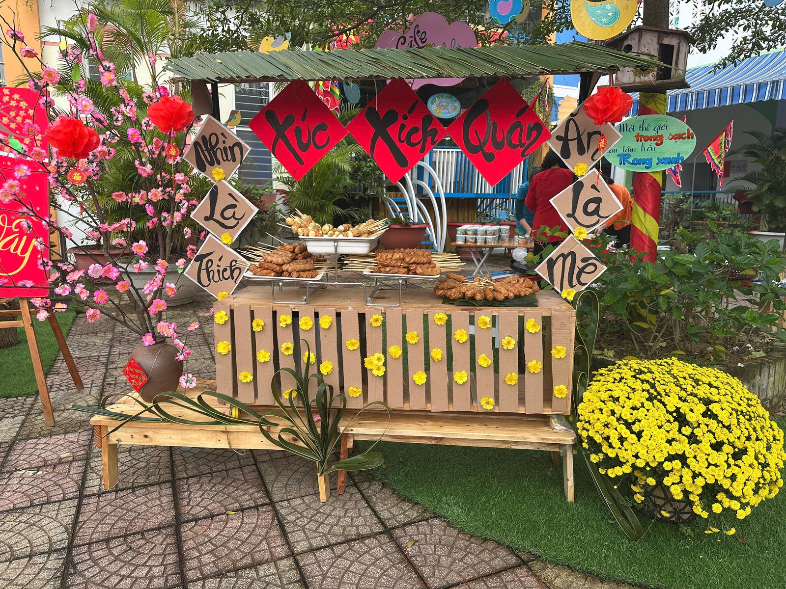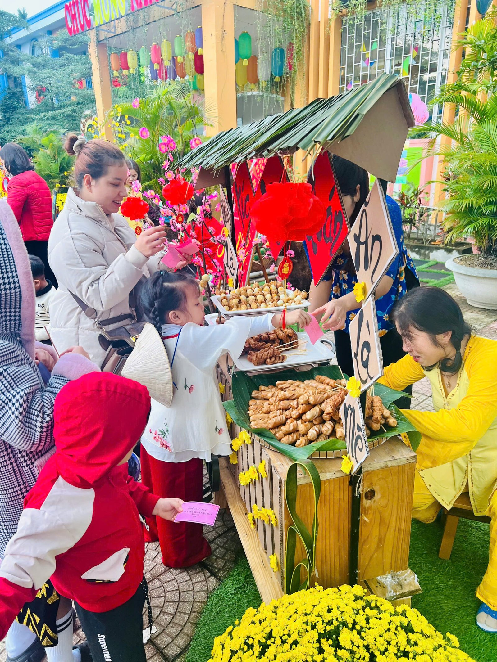 Với những giá trị văn hóa truyền thống, cùng với các món ăn đặc trưng cho ngày Tết 🧧🧧, đã được các Cô Anh Đào chăm chút, tỉ mỉ kỹ lưỡng từng món ăn để tạo nên một không gian ẩm thực thu nhỏ mang đậm bản sắc “Tết quê” và giúp các con cảm nhận được niềm vui trẩy hội mừng Xuân cùng chào đón một năm mới bình an và hạnh phúc 🌸🌼