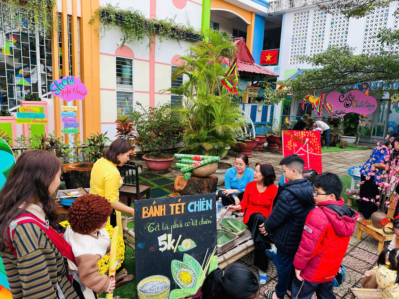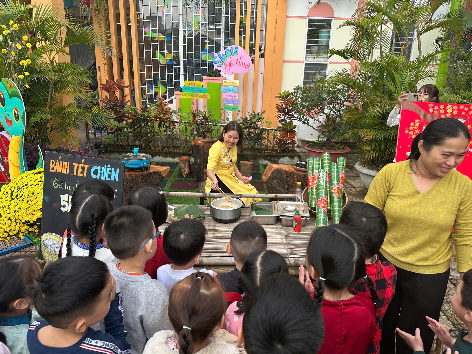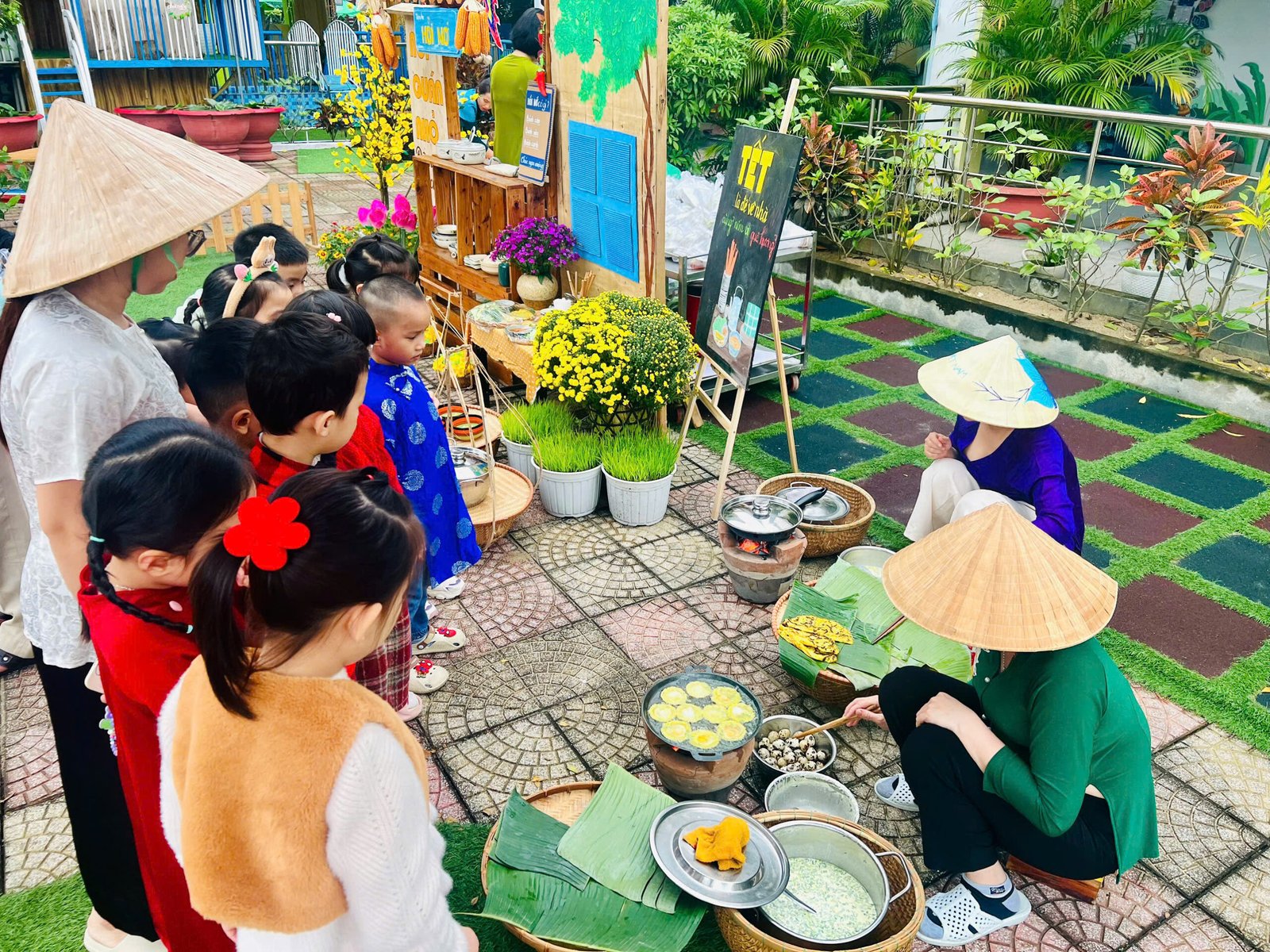 Với những giá trị văn hóa truyền thống, cùng với các món ăn đặc trưng cho ngày Tết 🧧🧧, đã được các Cô Anh Đào chăm chút, tỉ mỉ kỹ lưỡng từng món ăn để tạo nên một không gian ẩm thực thu nhỏ mang đậm bản sắc “Tết quê” và giúp các con cảm nhận được niềm vui trẩy hội mừng Xuân cùng chào đón một năm mới bình an và hạnh phúc 🌸🌼