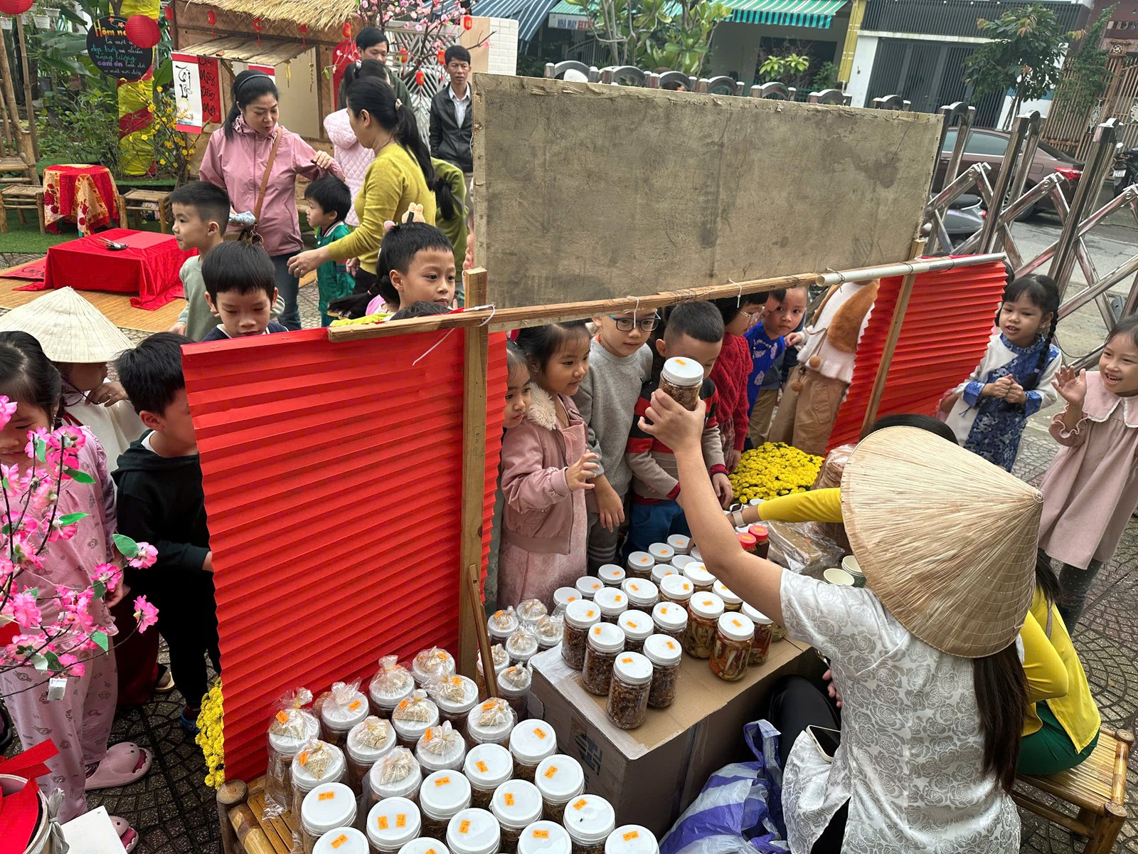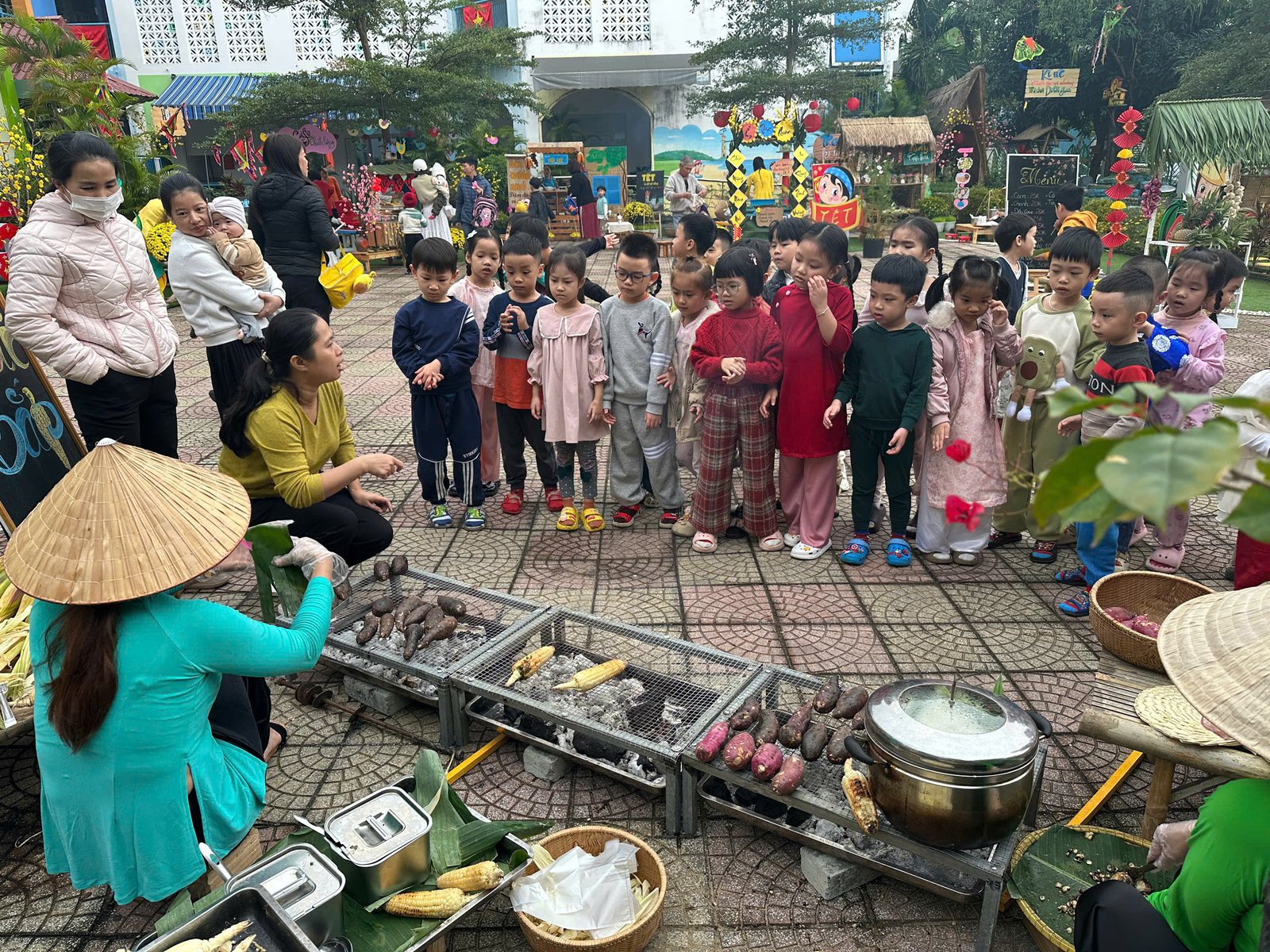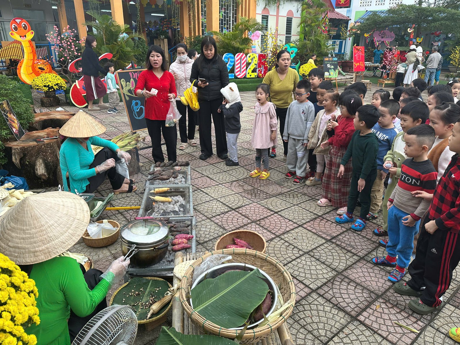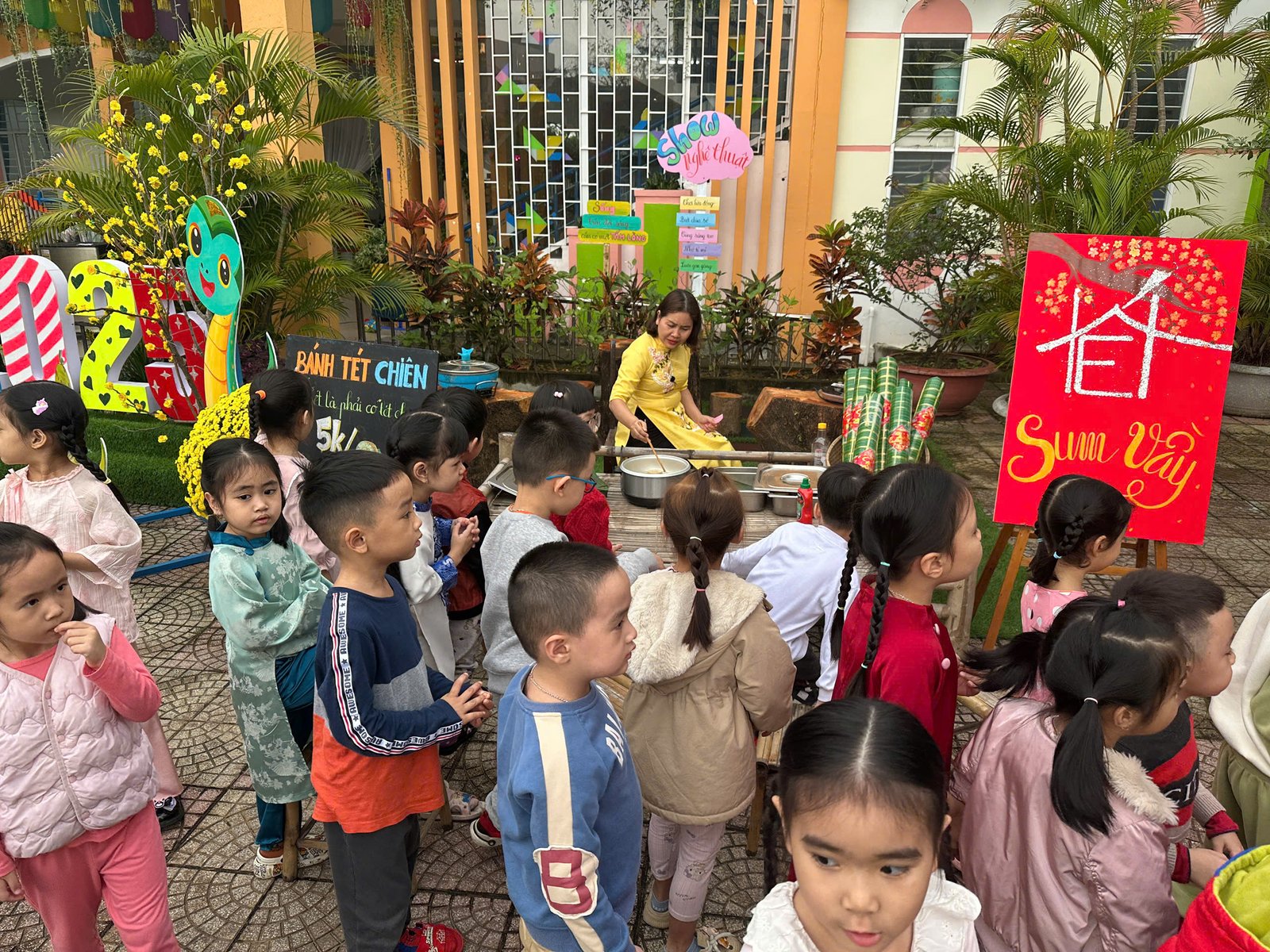 Với những giá trị văn hóa truyền thống, cùng với các món ăn đặc trưng cho ngày Tết 🧧🧧, đã được các Cô Anh Đào chăm chút, tỉ mỉ kỹ lưỡng từng món ăn để tạo nên một không gian ẩm thực thu nhỏ mang đậm bản sắc “Tết quê” và giúp các con cảm nhận được niềm vui trẩy hội mừng Xuân cùng chào đón một năm mới bình an và hạnh phúc 🌸🌼